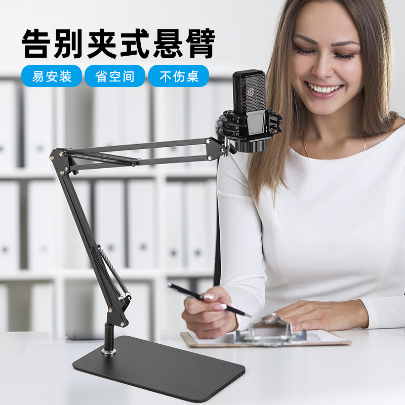 金属底盘桌面麦克风悬臂支架底座直播电容麦架莱维特通用话筒支架