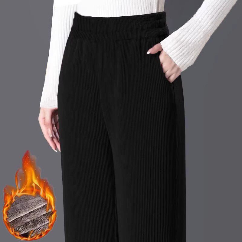 特价灯芯绒保暖裤妈妈裤子加绒加厚直筒欧棉绒阔腿裤冬休闲裤爆款