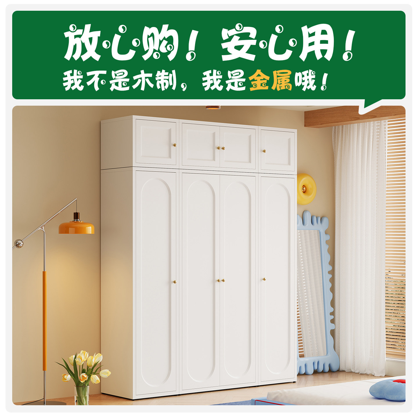加厚铁皮衣柜大衣柜家用卧室长虹玻璃门耐用衣橱铁艺收纳柜储物柜