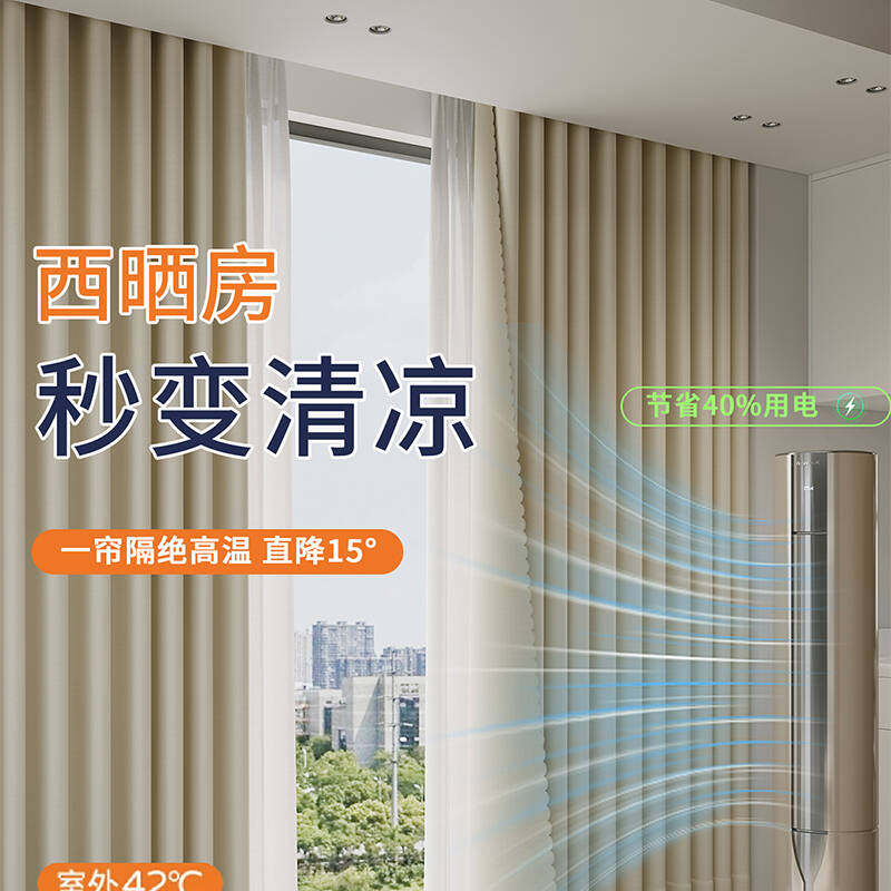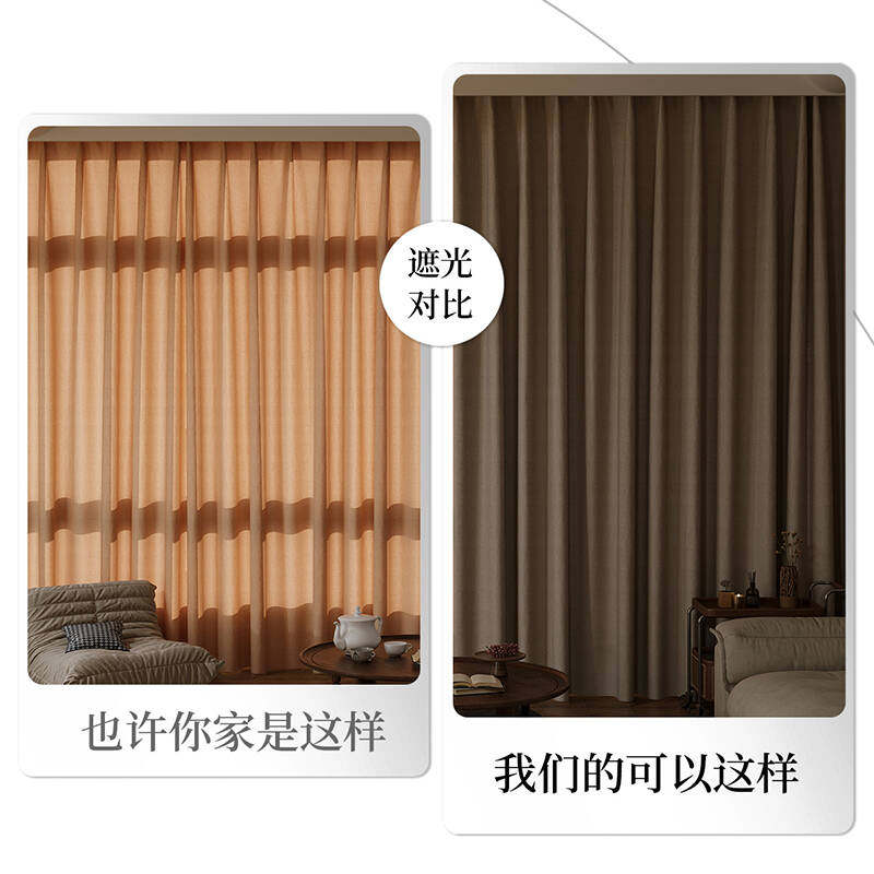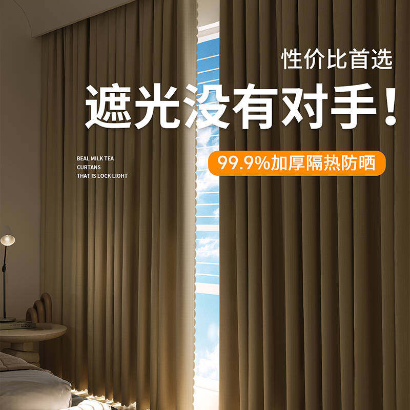 奶油色全遮光窗帘2025新款卧室客厅阳台防晒隔热免打孔安装遮阳布