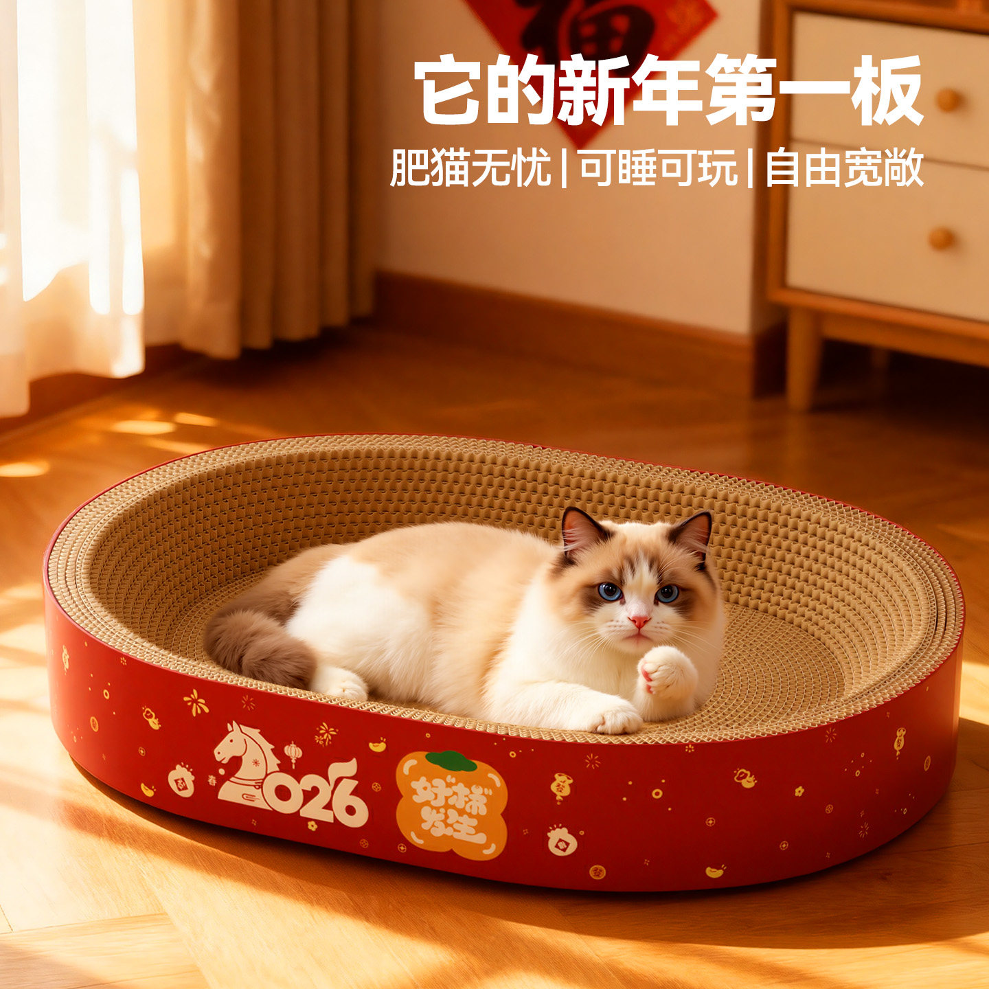 新年猫窝猫抓板一体耐磨不掉屑四季通用瓦楞纸猫咪用品猫爪盆睡窝