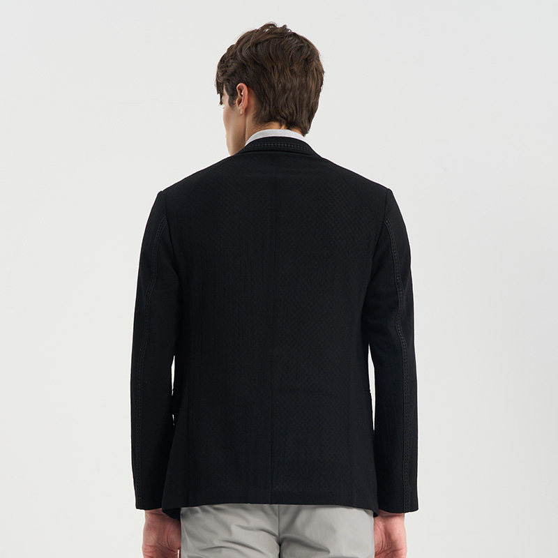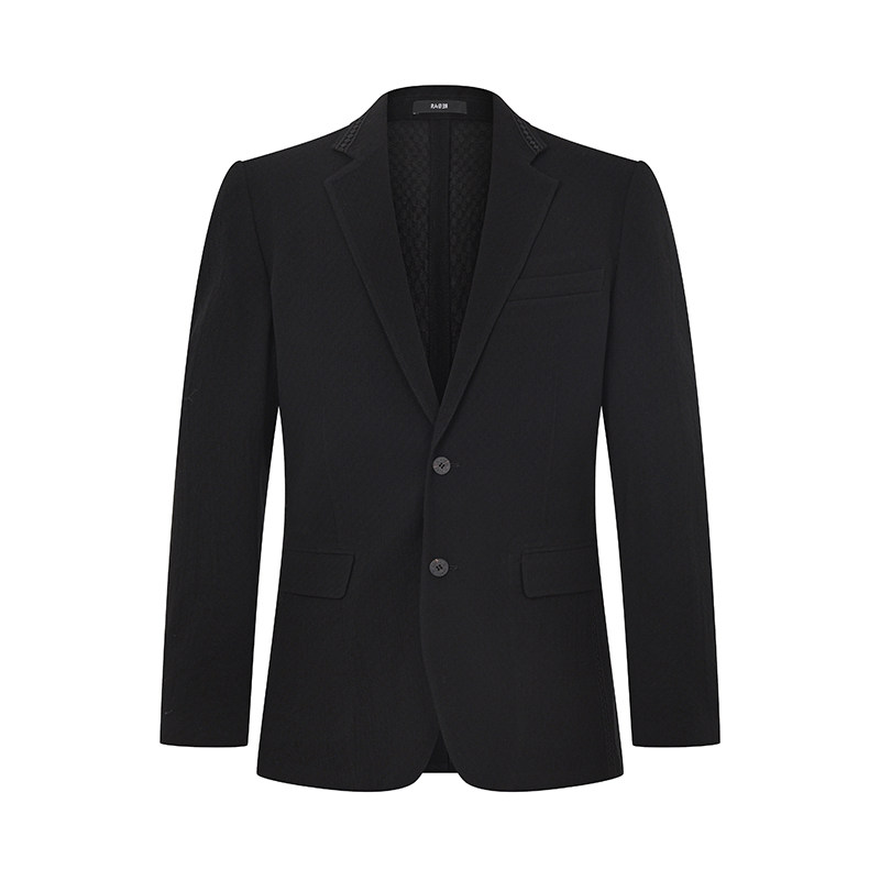 RARE威雅男装春夏新款格纹小肌理微透羊毛黑色休闲西服外套薄