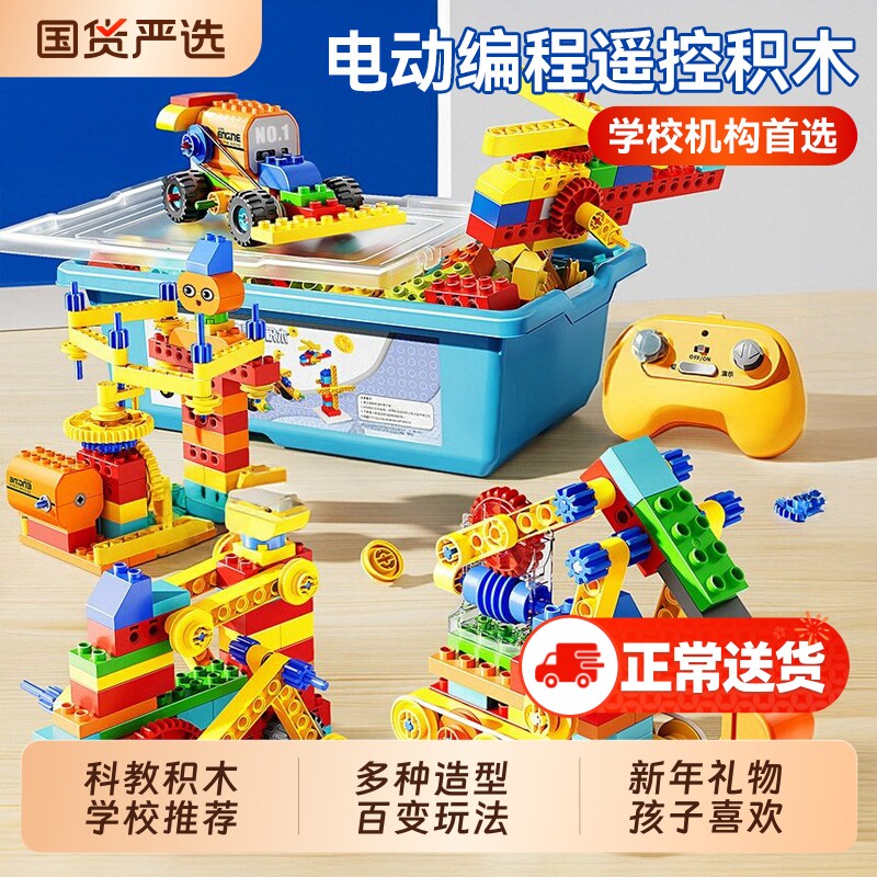 儿童大颗粒积木电动齿轮机械科教3益智拼装玩具9656男孩6岁礼物