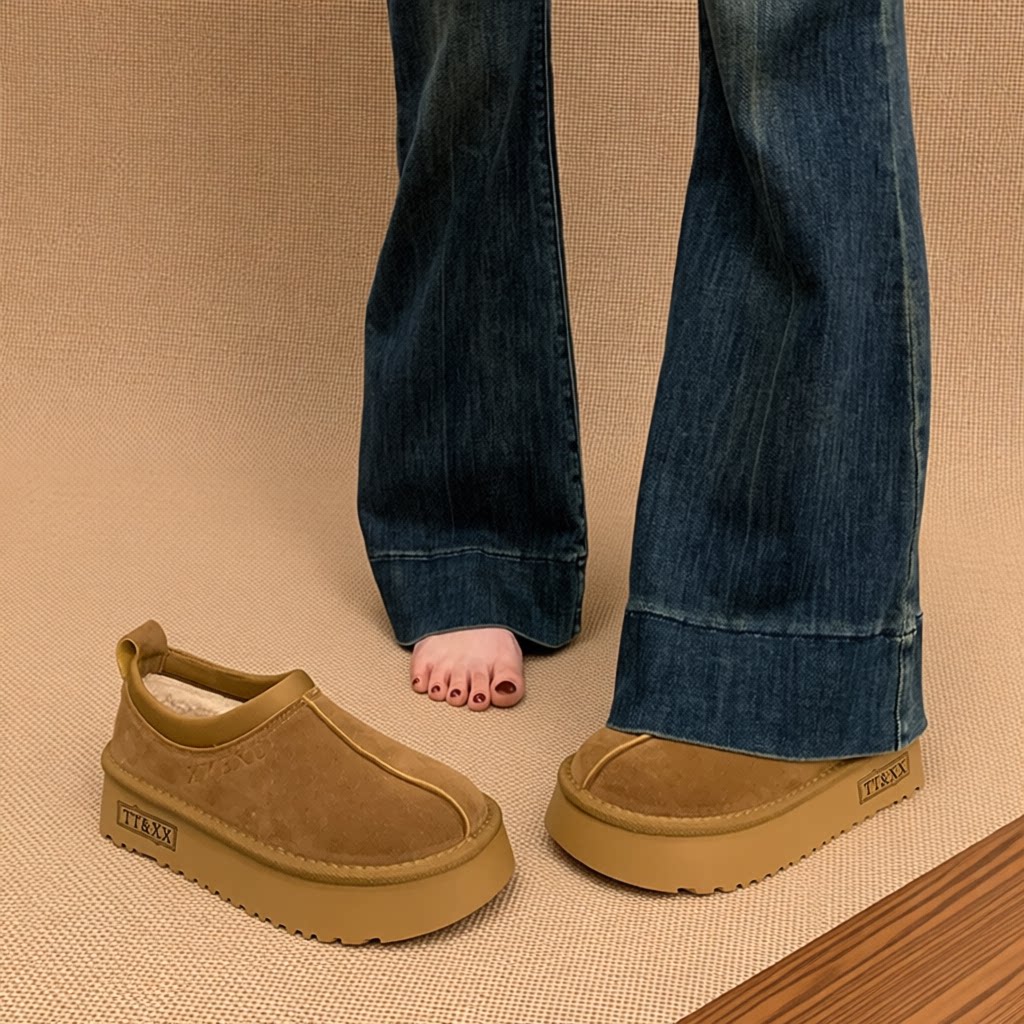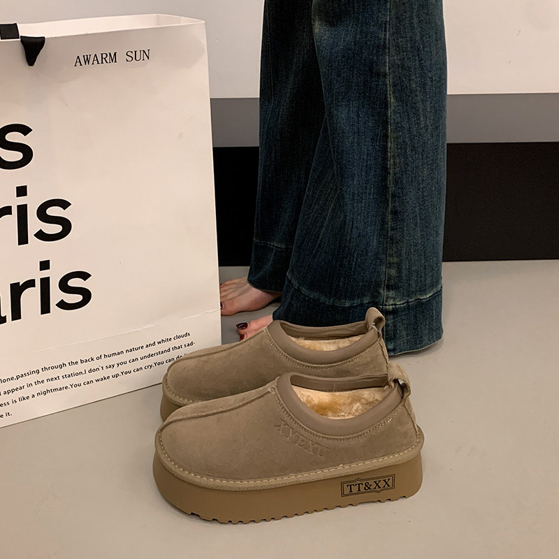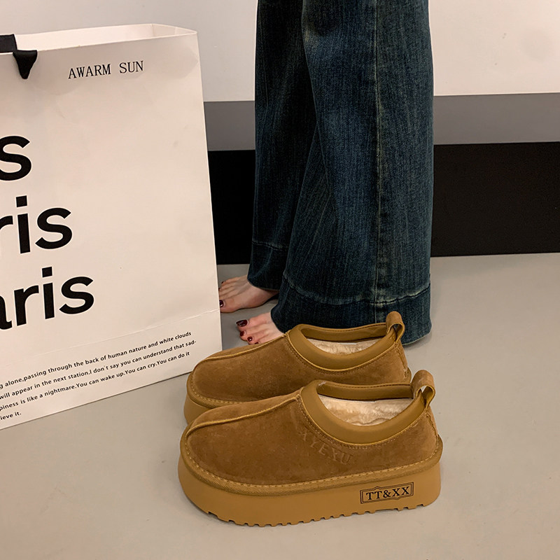 低帮厚底雪地靴女2025新款冬季懒人一脚蹬毛毛棉鞋加绒加厚女鞋子