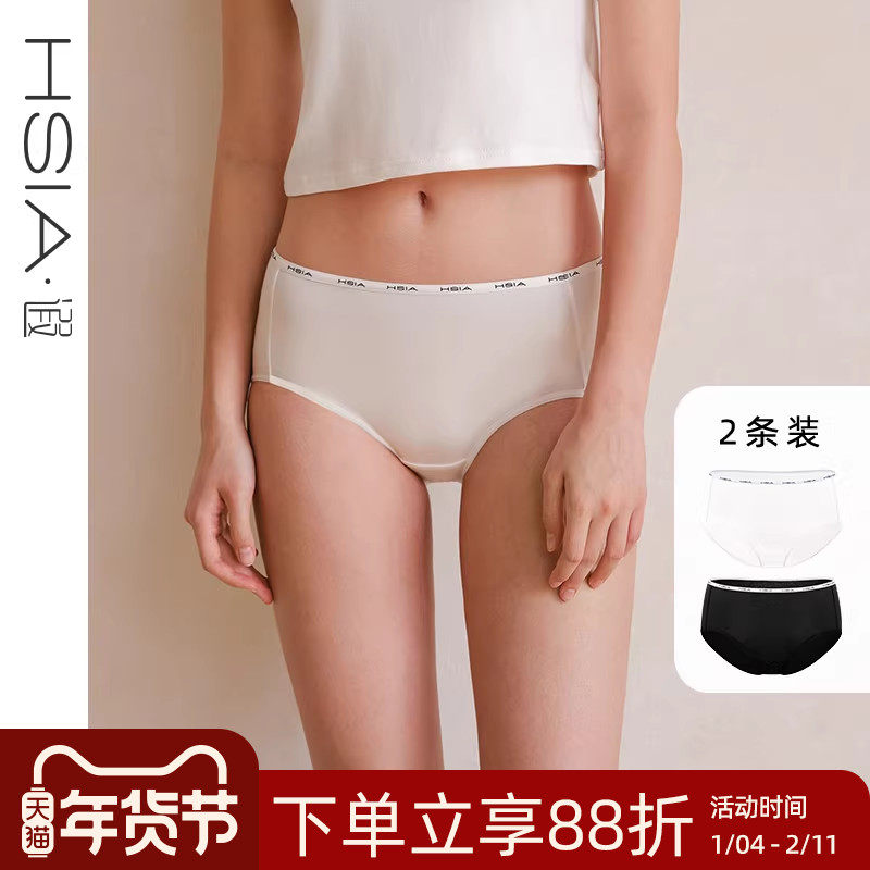 遐2条装中腰平角裤新款酷感logo带50S精梳棉亲肤包臀内裤女秋冬