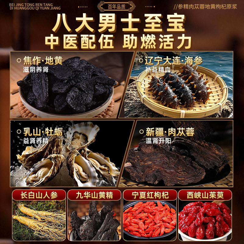 人参黄精海参肉苁蓉鲜枸杞原浆男补精强肾正品官方旗舰店饮料养肾