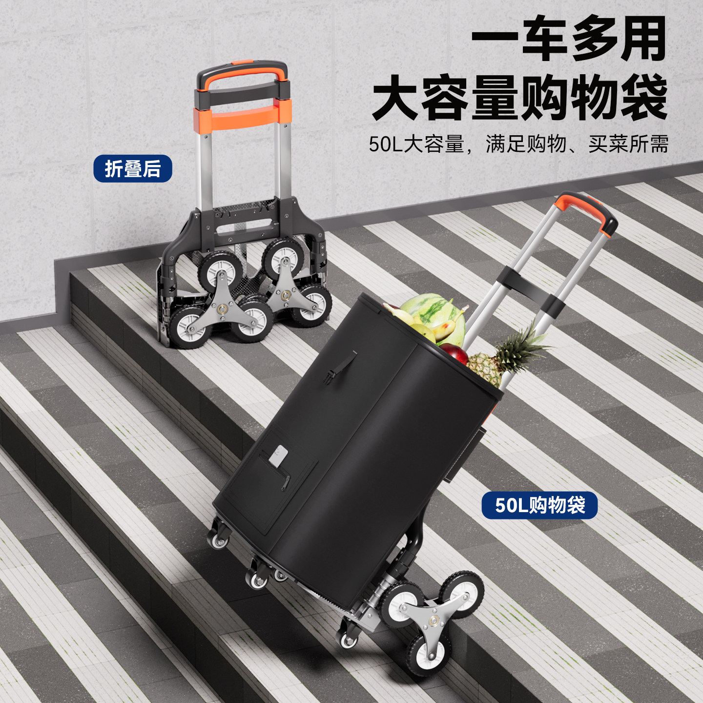 爬楼梯手拉车便携行李车拉杆车推车拉货购物买菜小拉车折叠小拖车