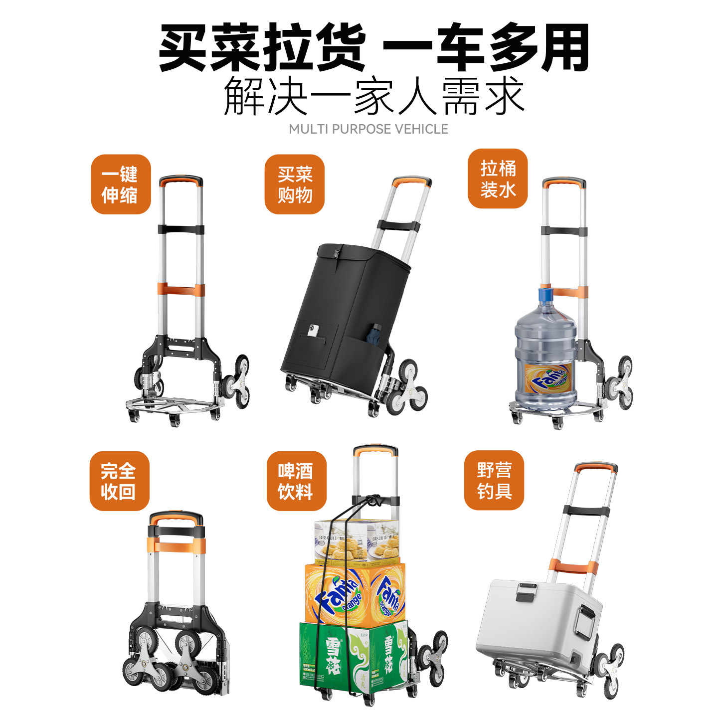 爬楼梯手拉车折叠便携行李爬梯车上楼搬运神器拉杆拖车小推车拉货