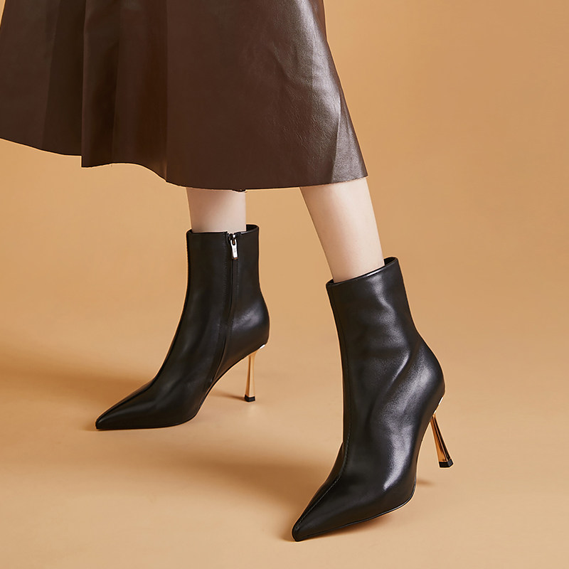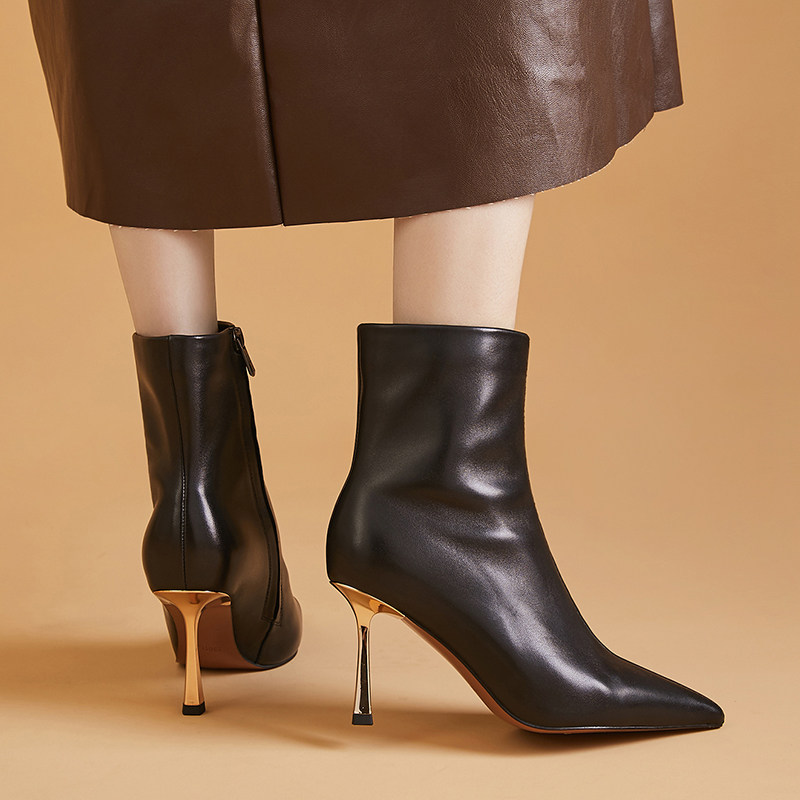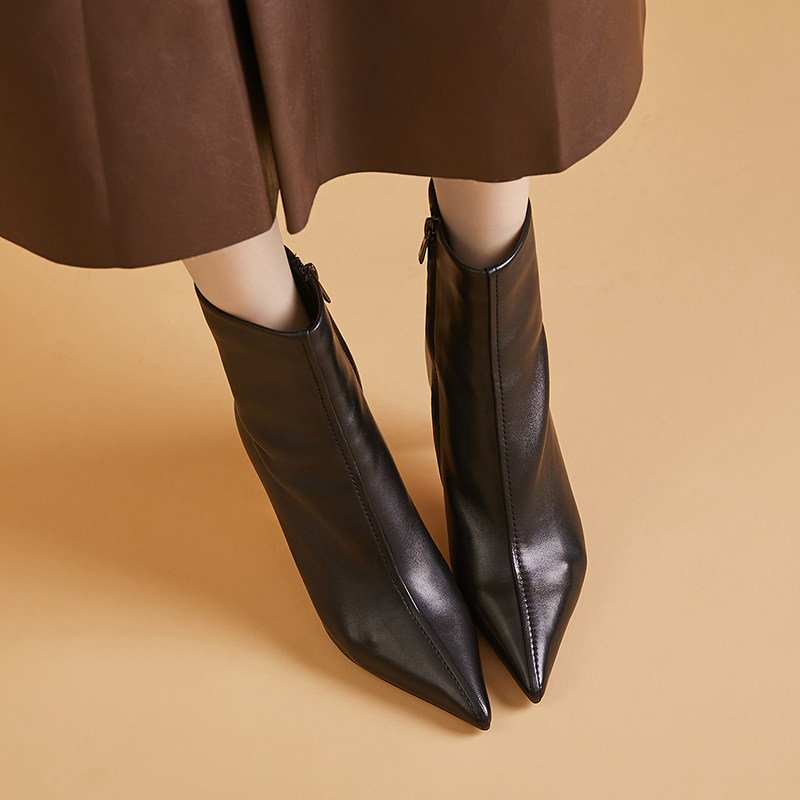 HR赫莲娜女鞋子2026年新款时装靴细跟法式尖头百搭气质真皮瘦瘦靴