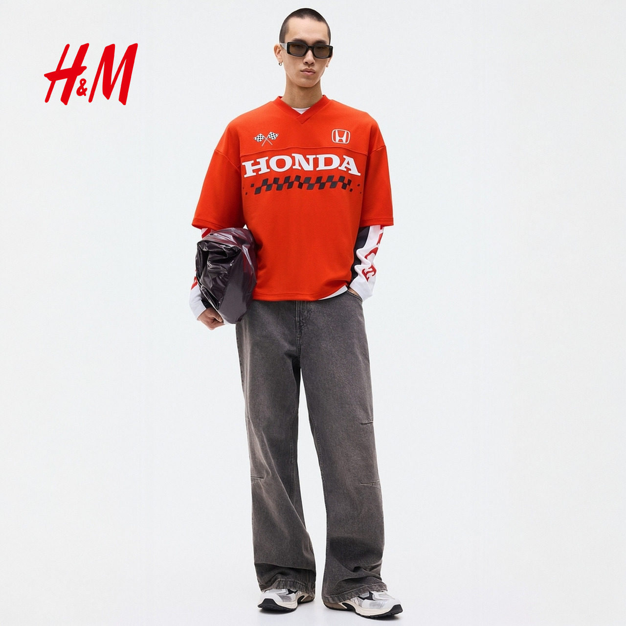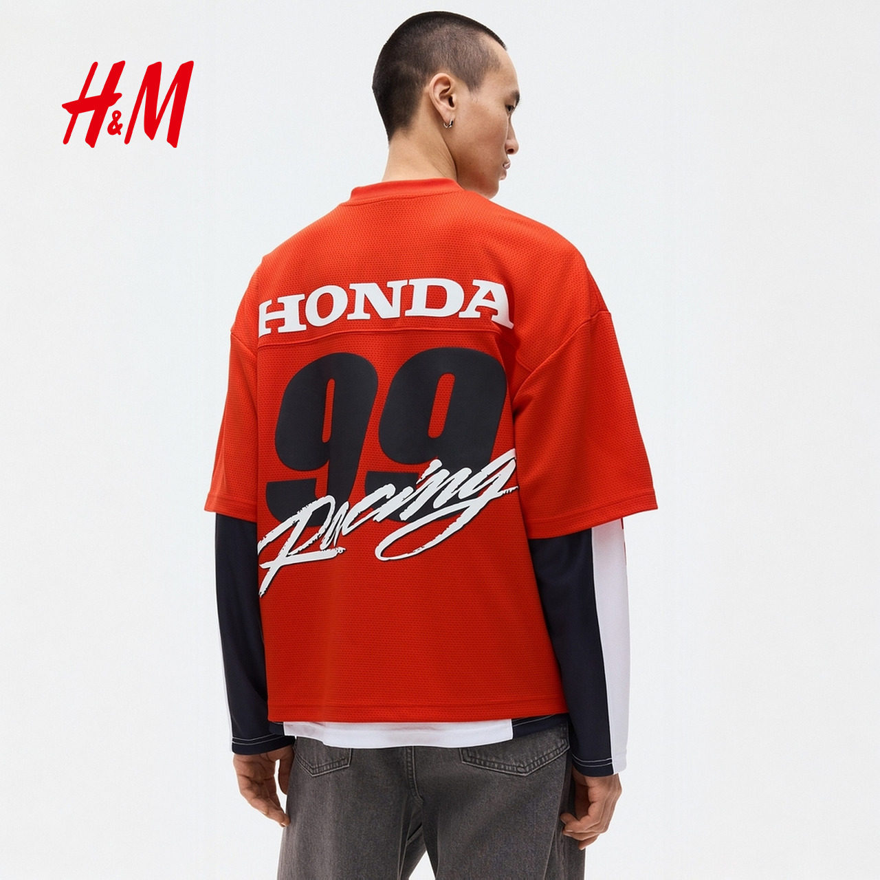 【Honda】HM男装女装T恤春季本田大廓形印花网眼布短袖1331359