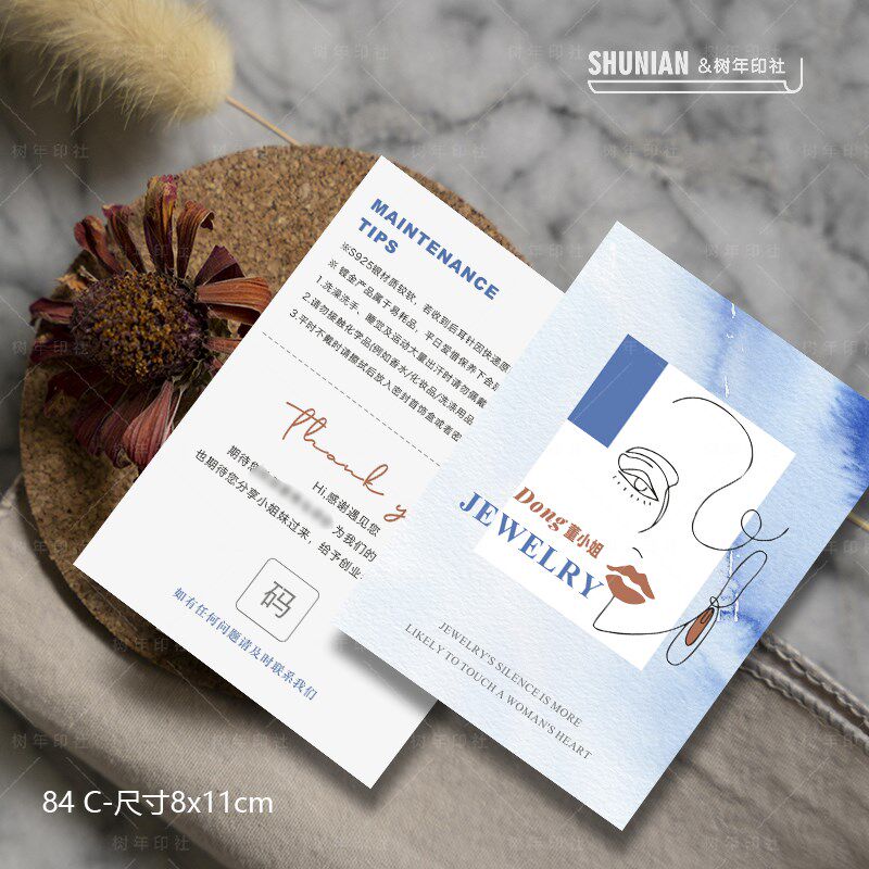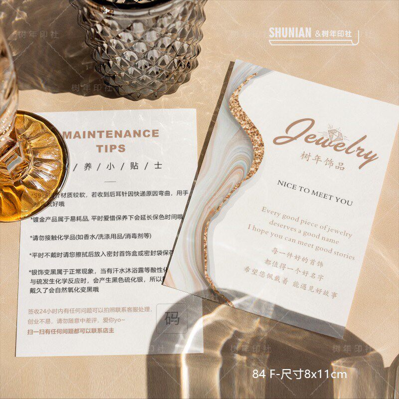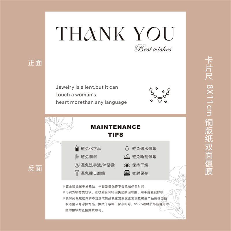 银饰保养卡定制项链耳饰养护卡珠宝饰品售后温馨提示卡感谢卡设计