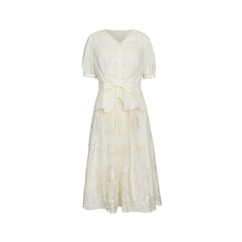 连衣裙套装 收腰设计 优雅绣花