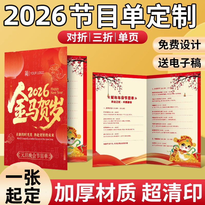 节目单设计制作模板打印元旦跨年音乐晚会电子版海报印刷艺术节庆典请柬幼儿园学校A4宣传单折页定制春节年会