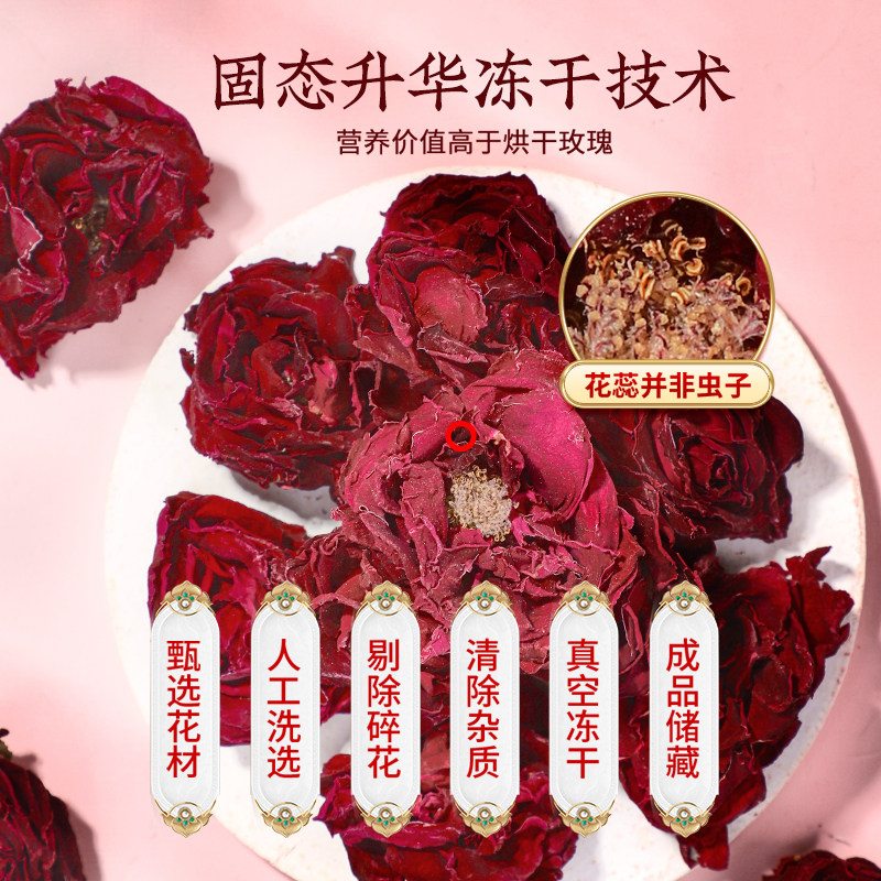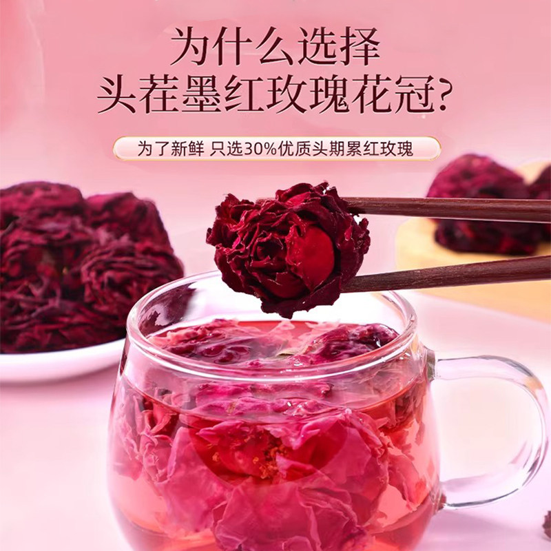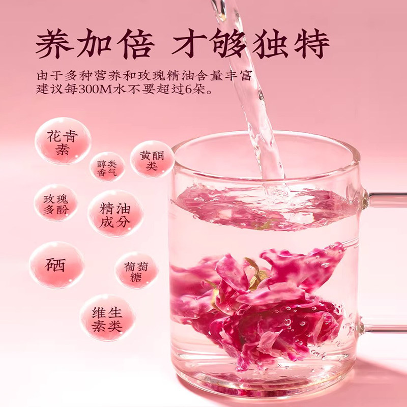 云南墨红玫瑰花茶疏肝解郁养颜花瓣官方旗舰店大朵冻干重瓣玫瑰花