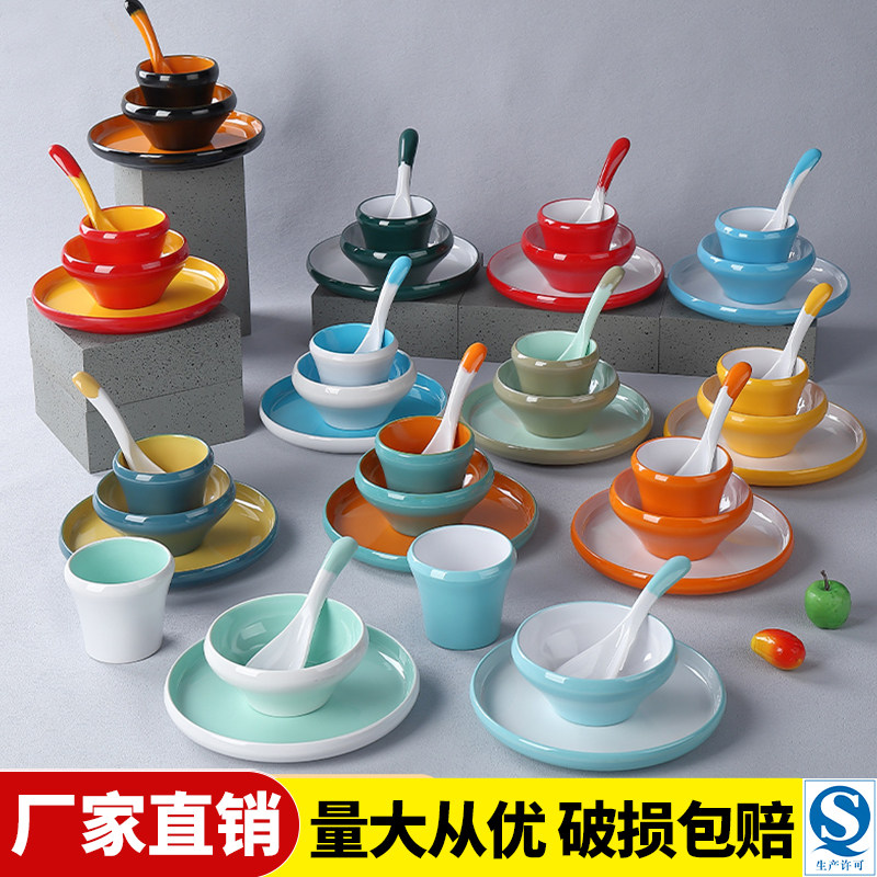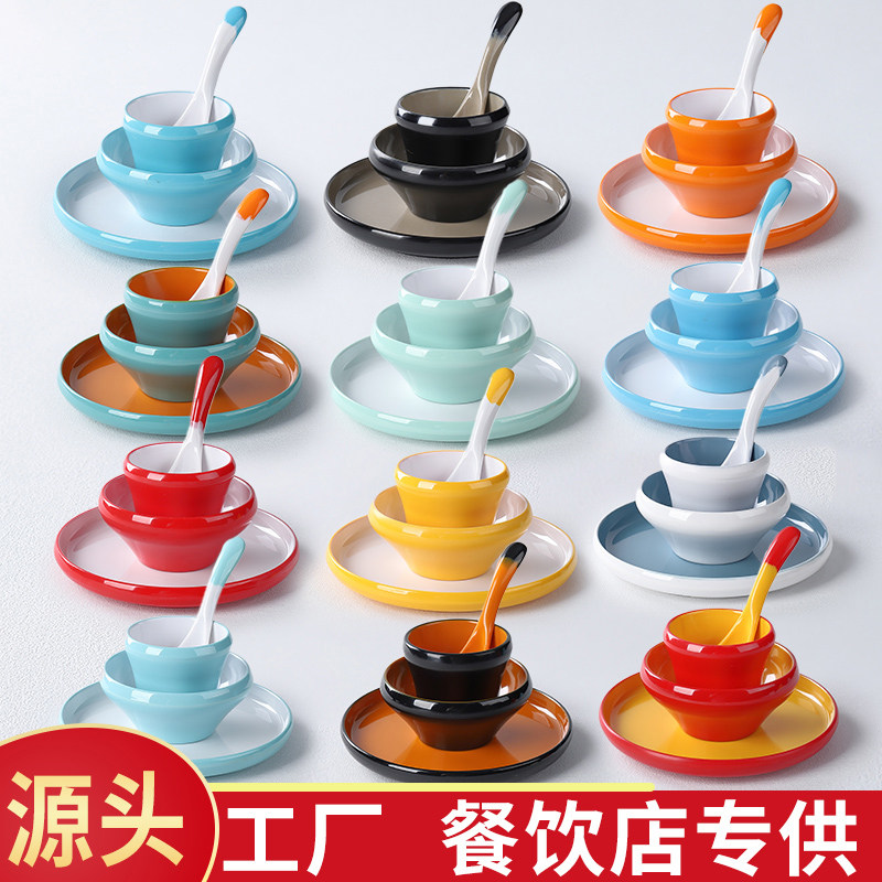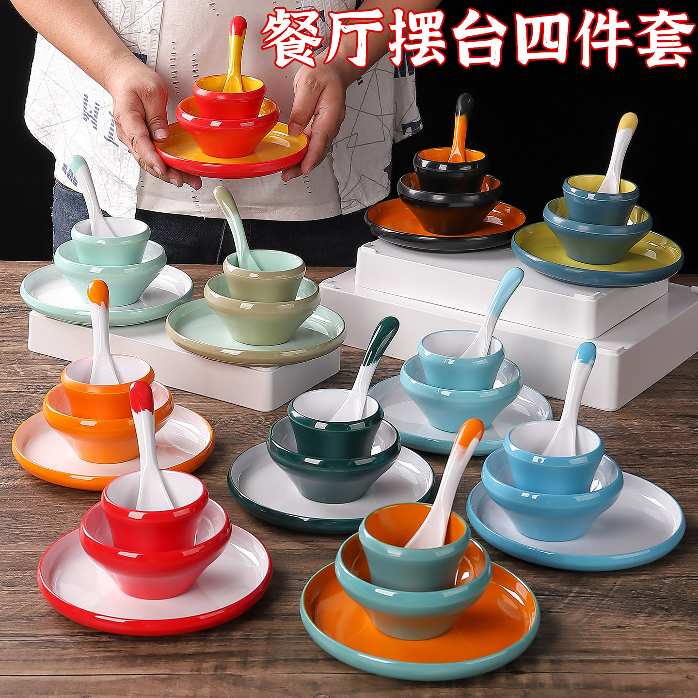火锅店摆台餐具四件套密胺创意仿瓷餐厅饭店盘碗勺骨碟杯套装商用