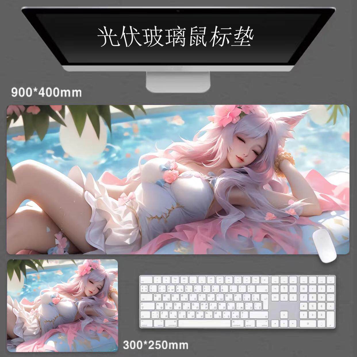 英雄联盟电脑桌垫宿舍男电竞游戏动漫阿狸高清定制光伏玻璃鼠标垫