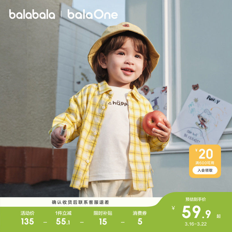 巴拉巴拉童装宝宝衬衫男童长袖2026休闲春装格子儿童外套学院风潮