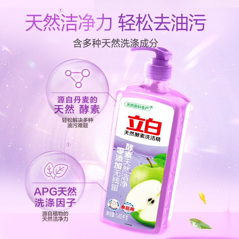 立白天然酵素洗洁精青苹果大瓶去腥去油不伤手家用厨房餐具洗碗剂