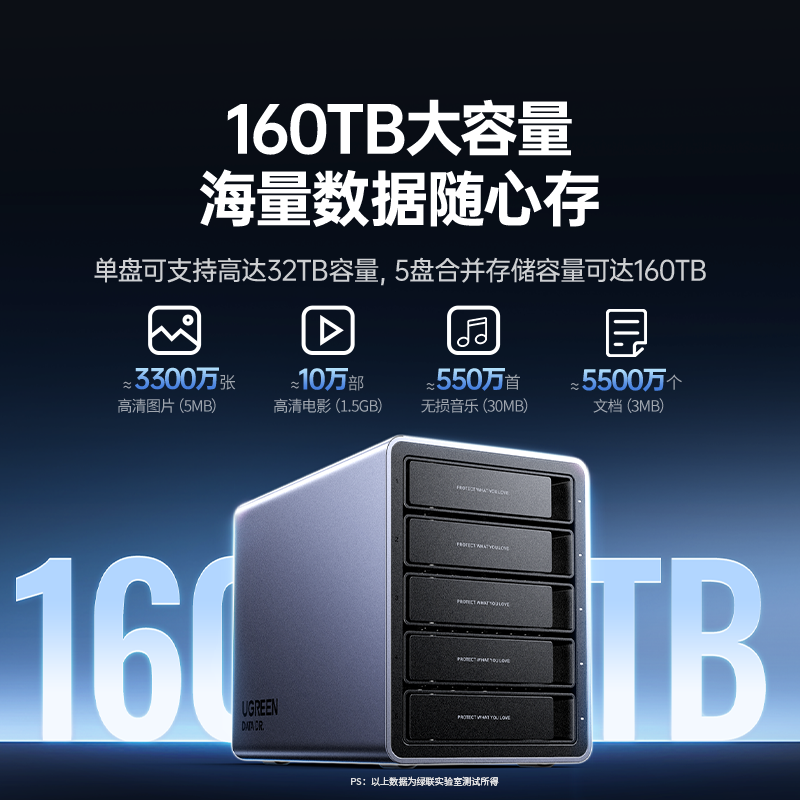绿联硬盘阵列柜机械外接盒3.5寸SATA磁盘多双盘位RAID移动存储器