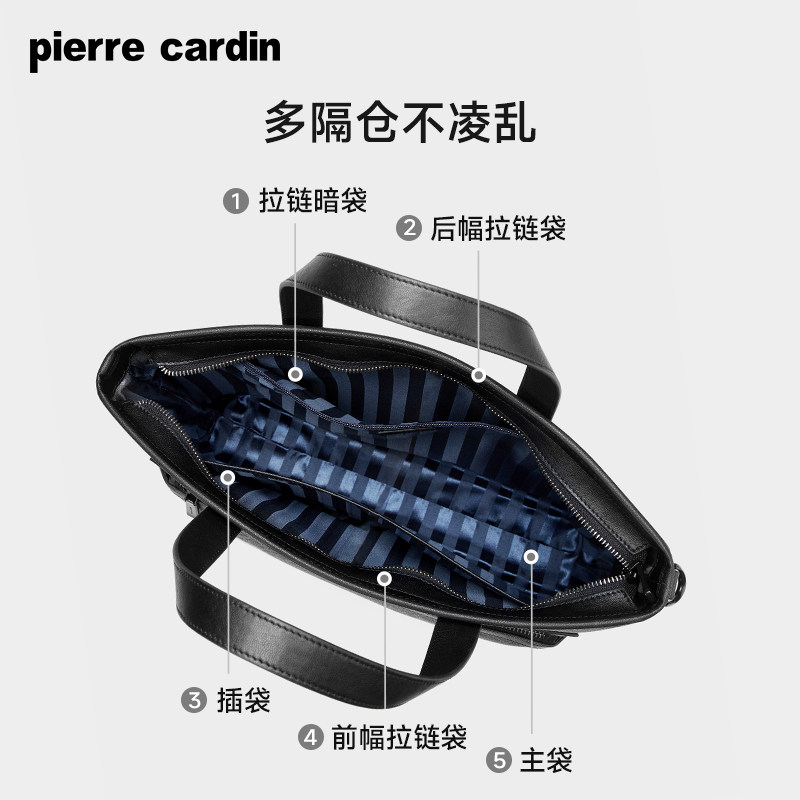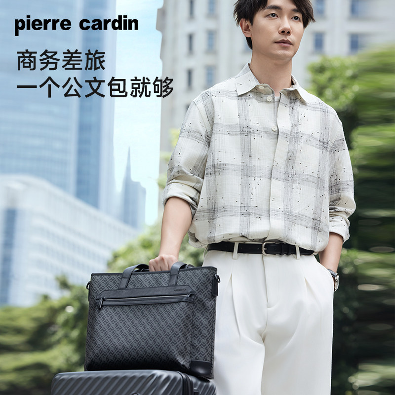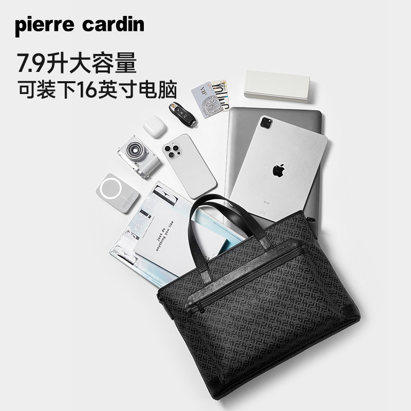 皮尔卡丹男士公文包商务休闲PVC老花电脑手提包大容量单肩斜挎包