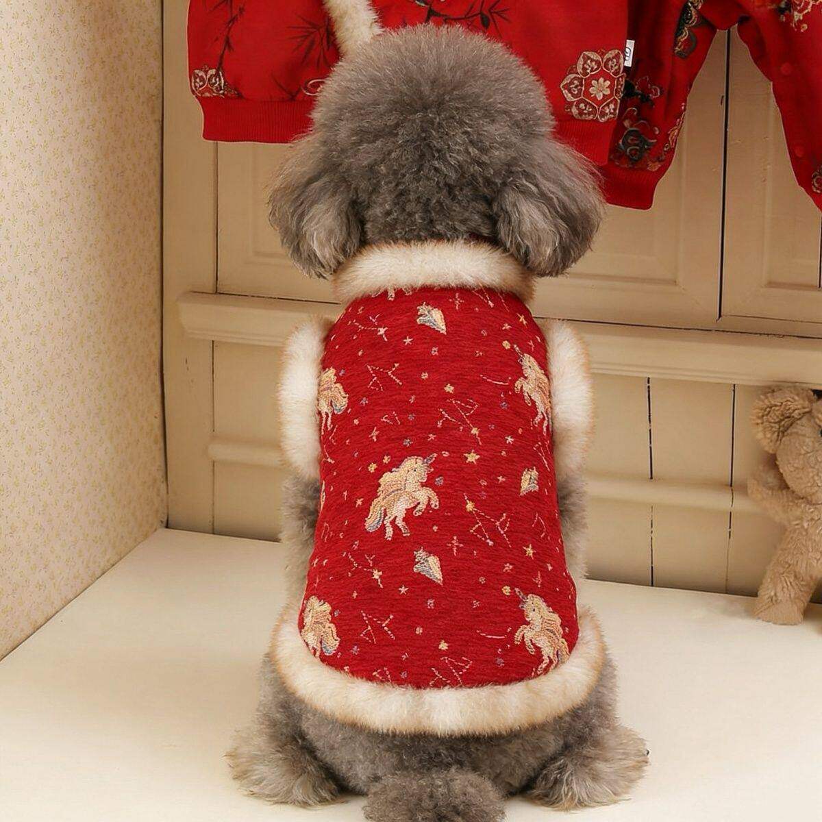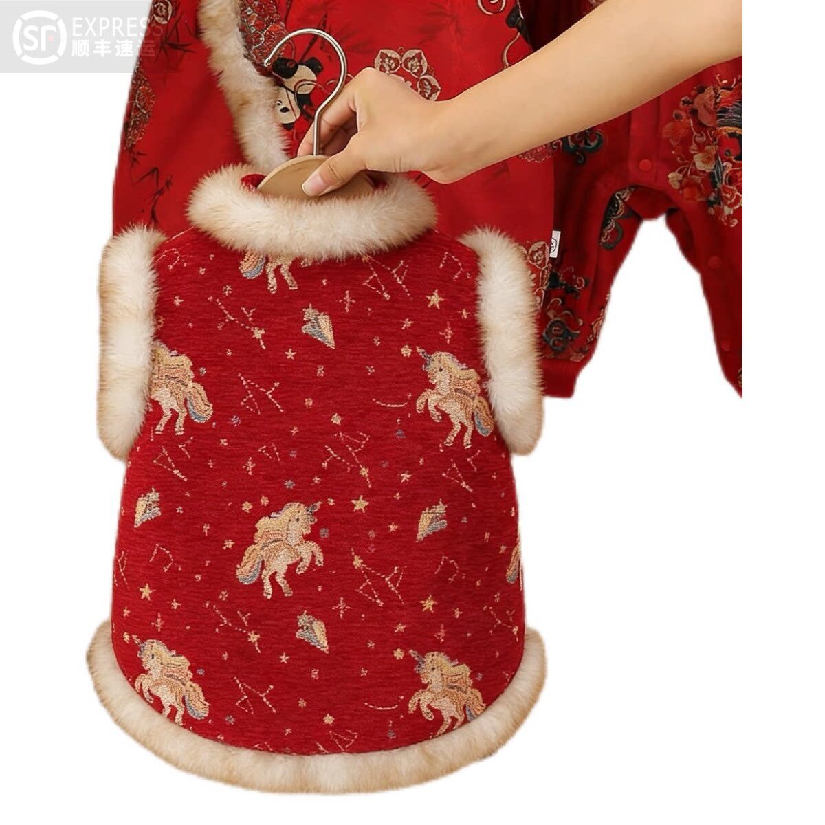 宠物过年衣服冬装加绒保暖狗狗猫咪新中式马甲喜庆拜年服唐装