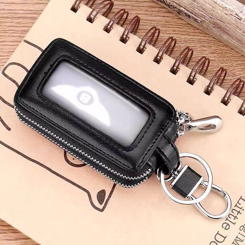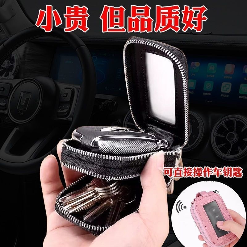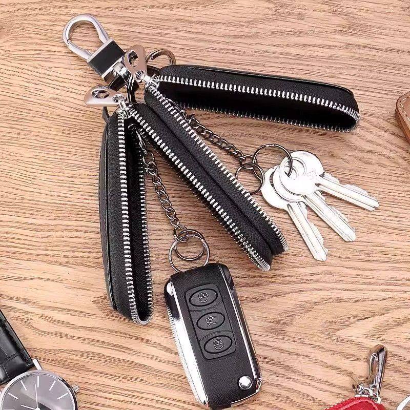 简约头层牛皮拉链双层汽车钥匙包男女通用腰挂保护套大容量锁匙包