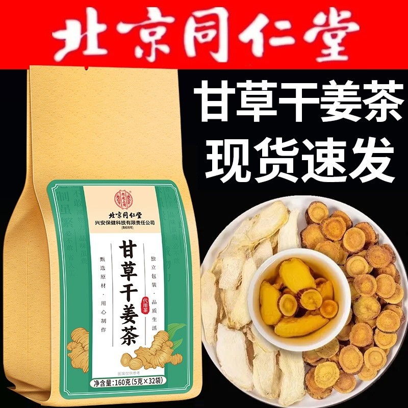 北京同仁堂甘草干姜汤生姜片秋冬泡茶水养生袋泡茶甘草片正品姜茶