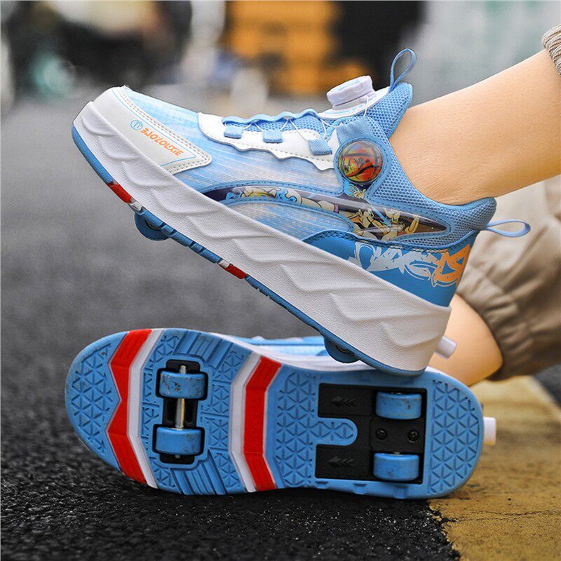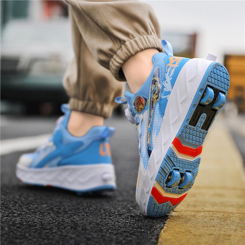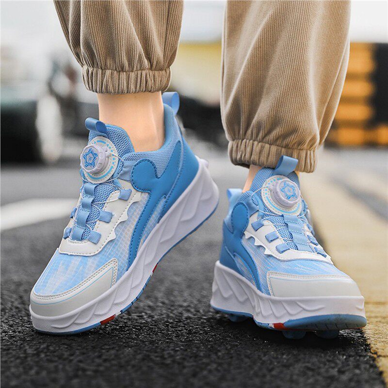 暴走鞋男童自动四轮儿童轮滑鞋新款可收缩女童轮滑鞋可走路运动鞋