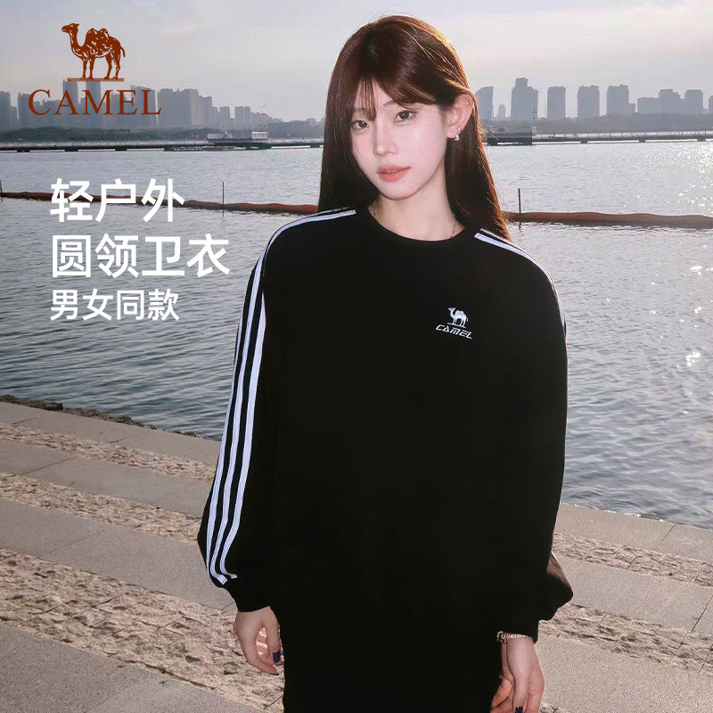 骆驼女装圆领加厚卫衣2025新款秋冬情侣黑色套头上衣宽松休闲长袖