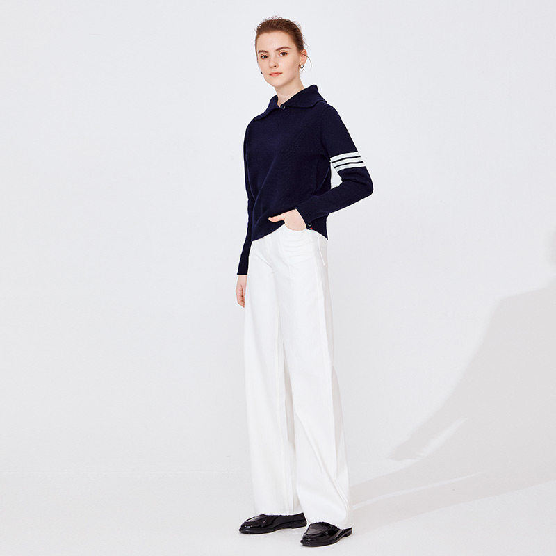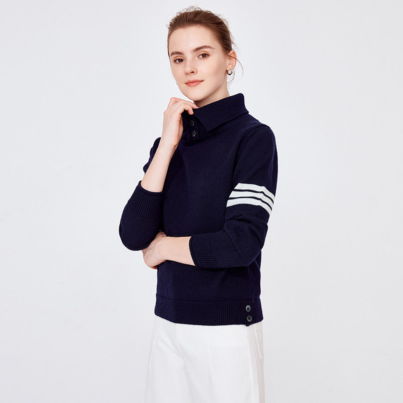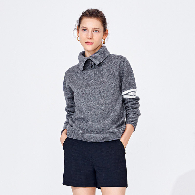 [羊毛]Navigare意大利小帆船冬季设计感毛衣女新款灰色针织衫