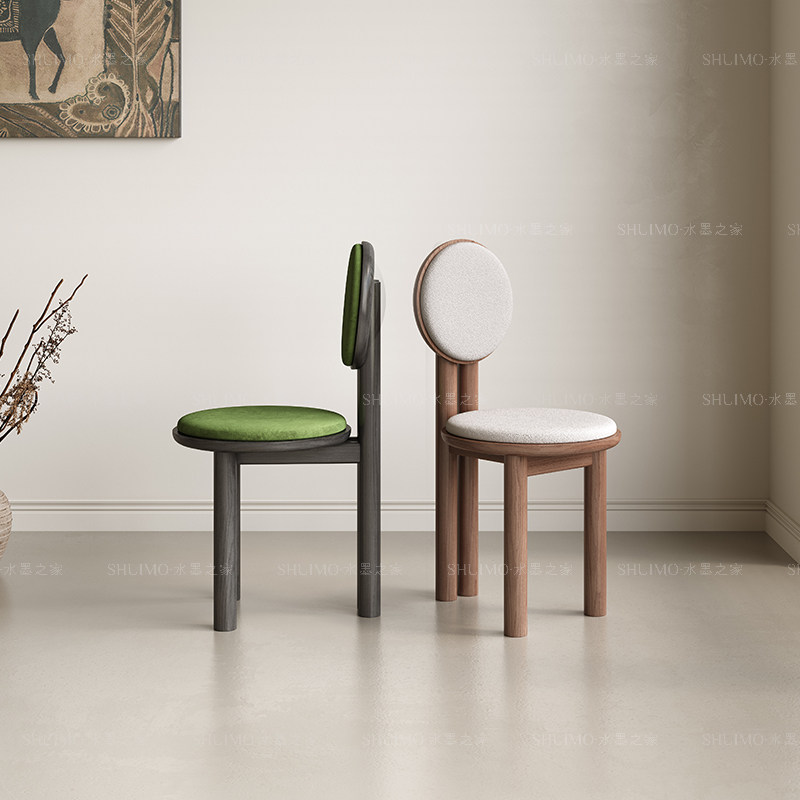 法式复中古风椅子家用全实木白蜡木满月椅餐椅设计师椅子高靠背椅