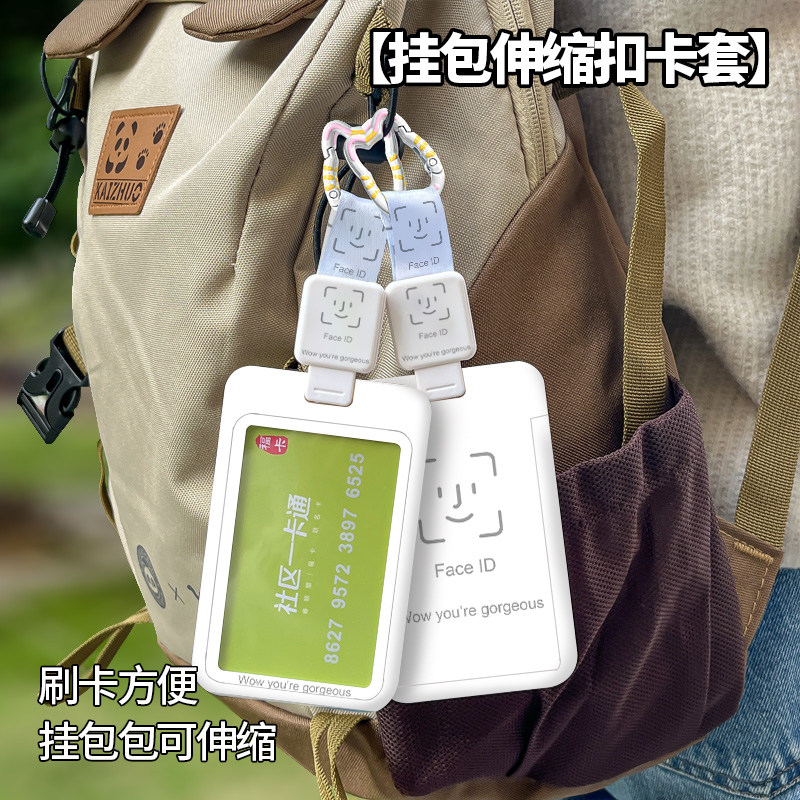 挂包伸缩扣卡套门禁卡刷卡方便带伸缩扣挂绳工牌防丢公交学生饭卡弹簧扣挂包可伸缩挂绳刷卡防丢身份证套