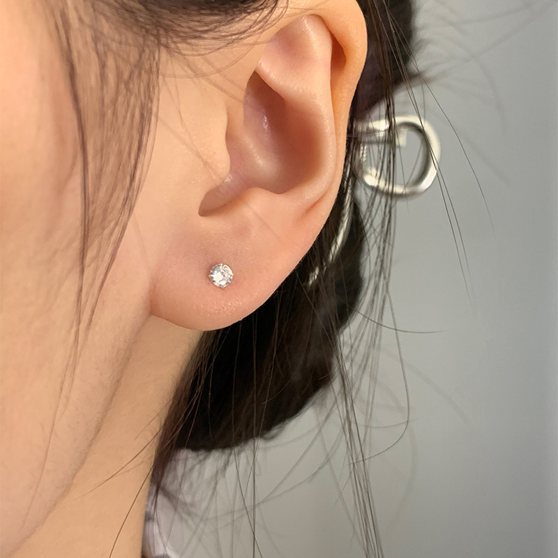 王鹤棣同款S999纯银锆石耳钉男小众设计款养耳洞耳环洗睡免摘耳饰