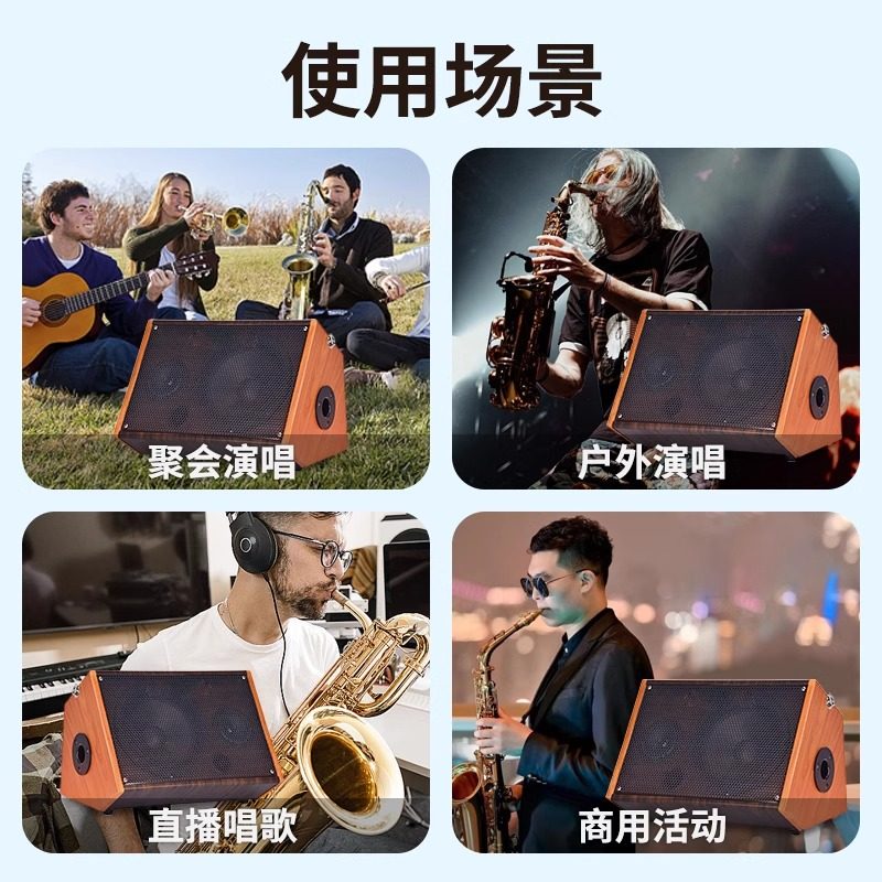 萨克斯专用木质蓝牙音箱户外路演弹唱音响便携式大功率直播内录