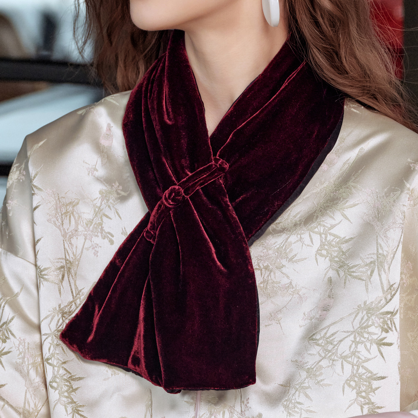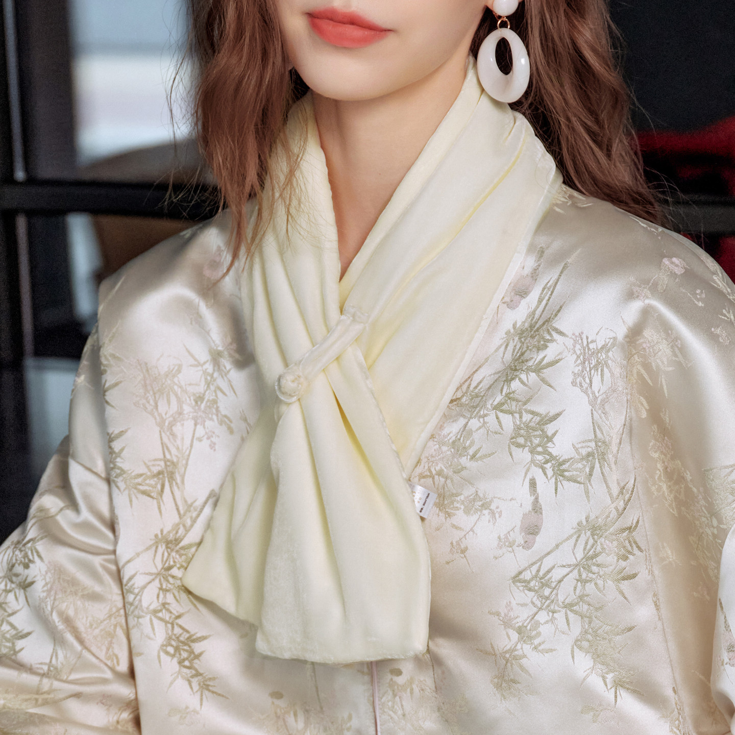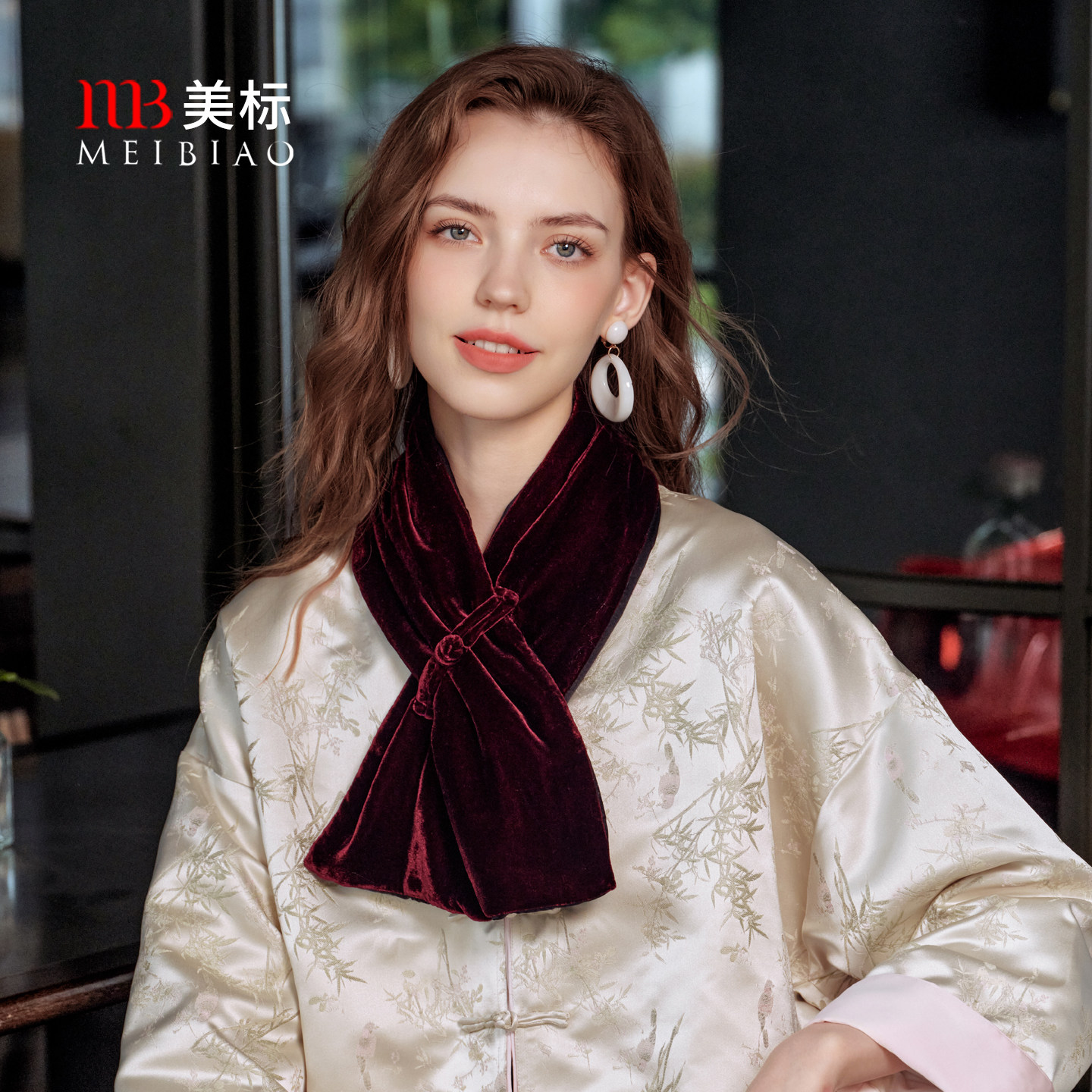 美标女士真丝围巾秋冬100%桑蚕丝填充纯色百搭金丝绒保暖丝绸围脖