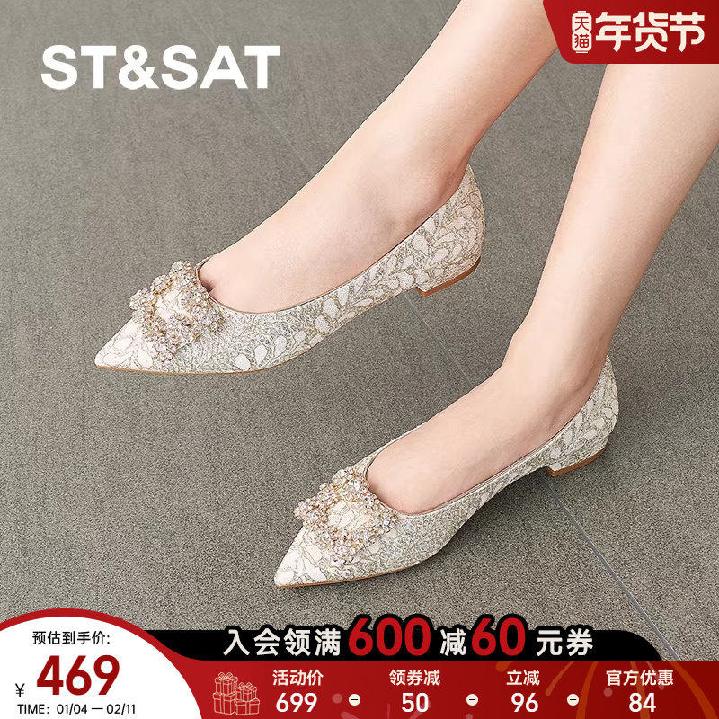 星期六浅口单鞋2025夏季新款水钻百搭方扣尖头绝美女鞋SSD3111144