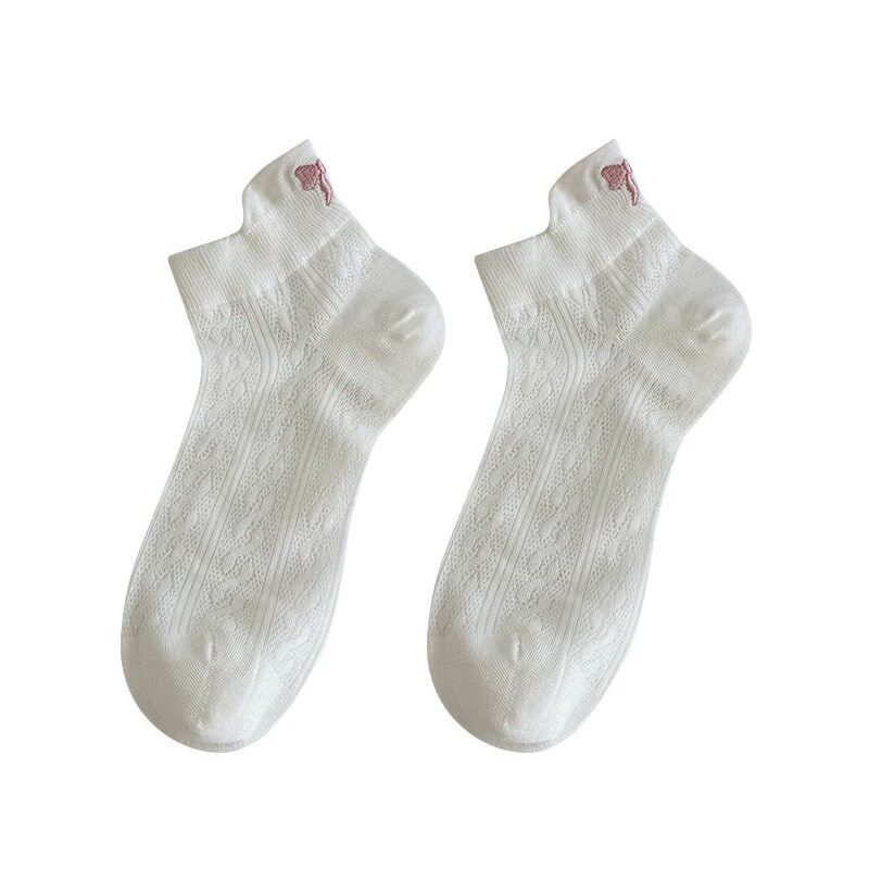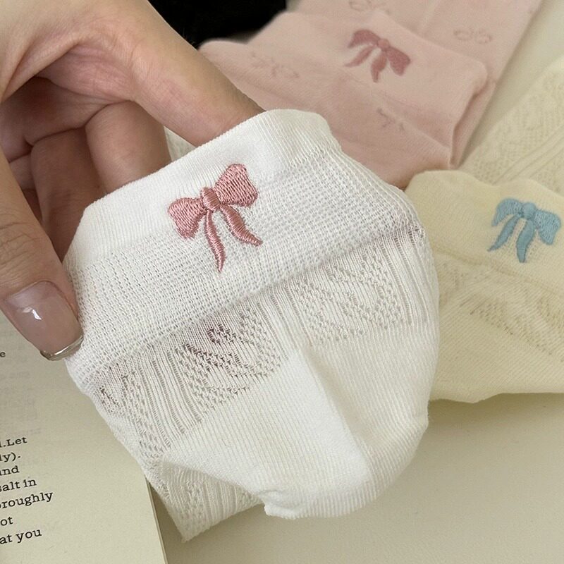 蝴蝶结袜子女芭蕾风短袜纯棉夏季薄款网眼白色短筒袜夏天黑色镂空
