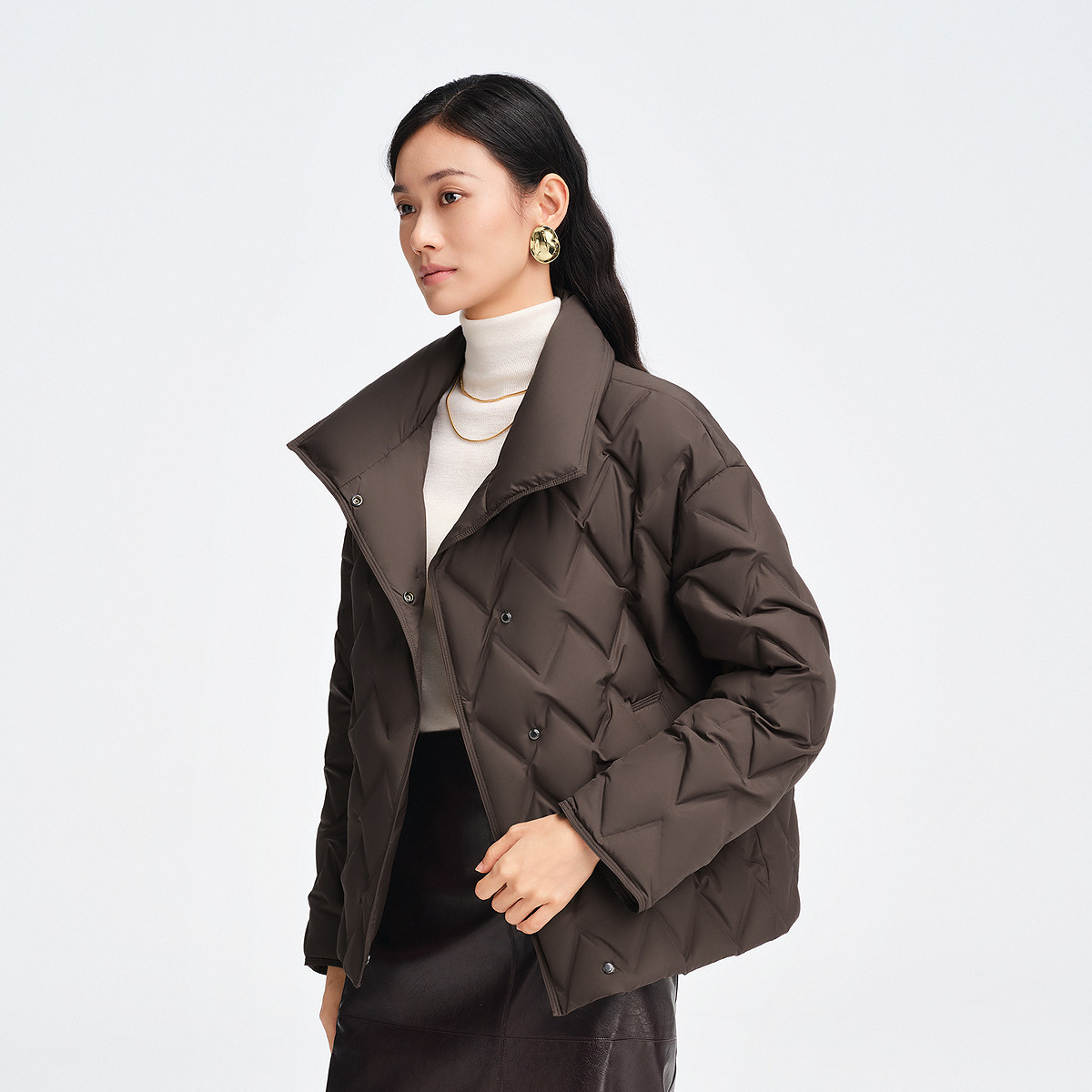 【鞠婧祎同款】鸭鸭2025年冬新款百搭短款女士纯色立领羽绒服外套