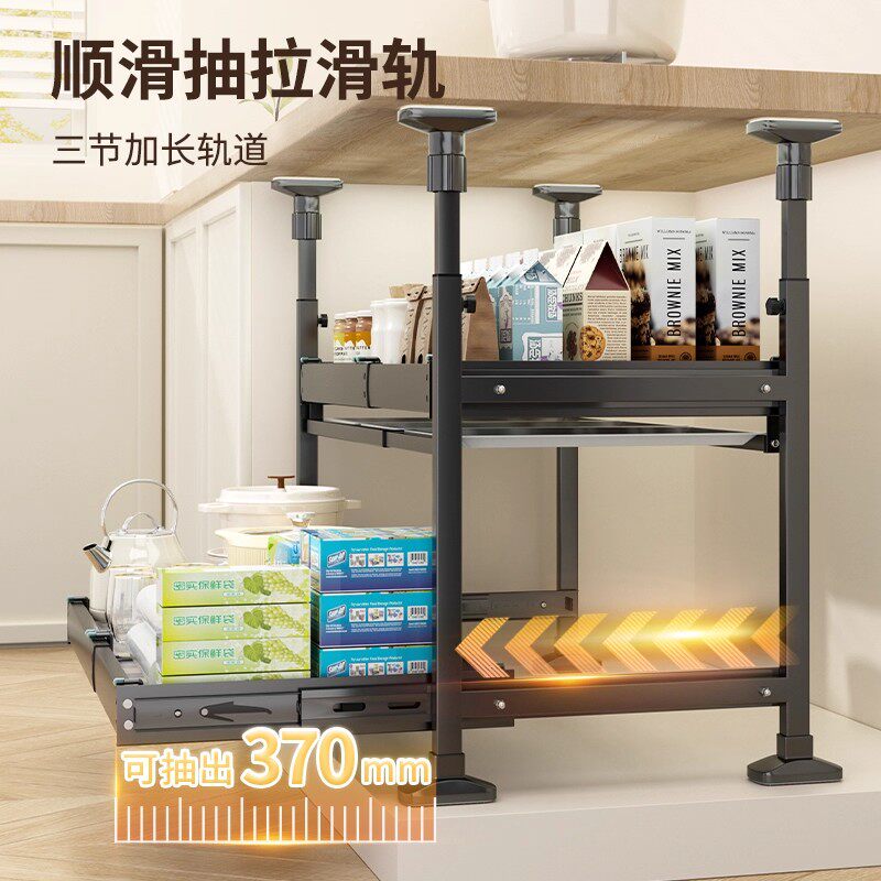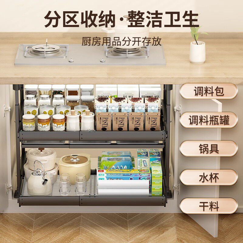 厨房锅具收纳盒整理盒锅盖调料带滑轮下水槽橱柜收纳多功能收纳架