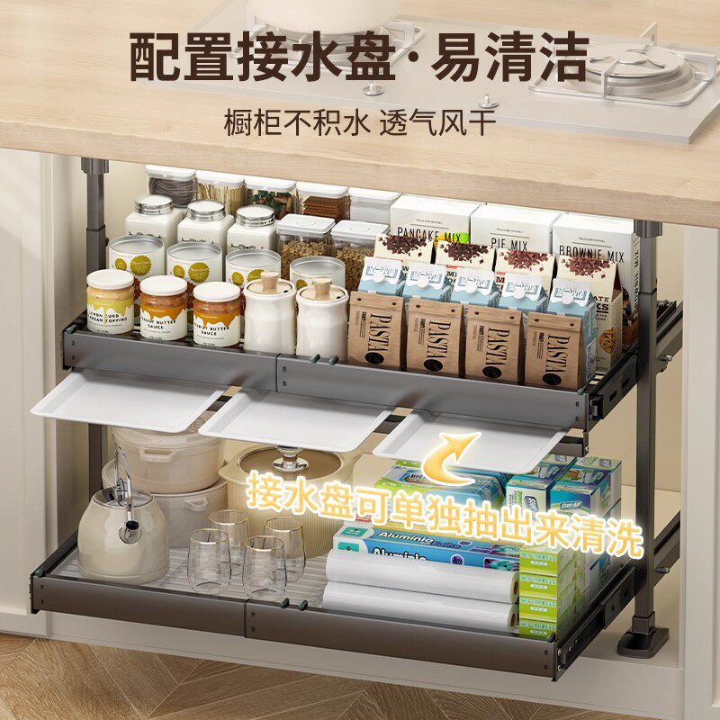 厨房免打孔拉篮橱柜可抽拉碗篮调味篮嵌入式衣柜拉篮家用碗架子