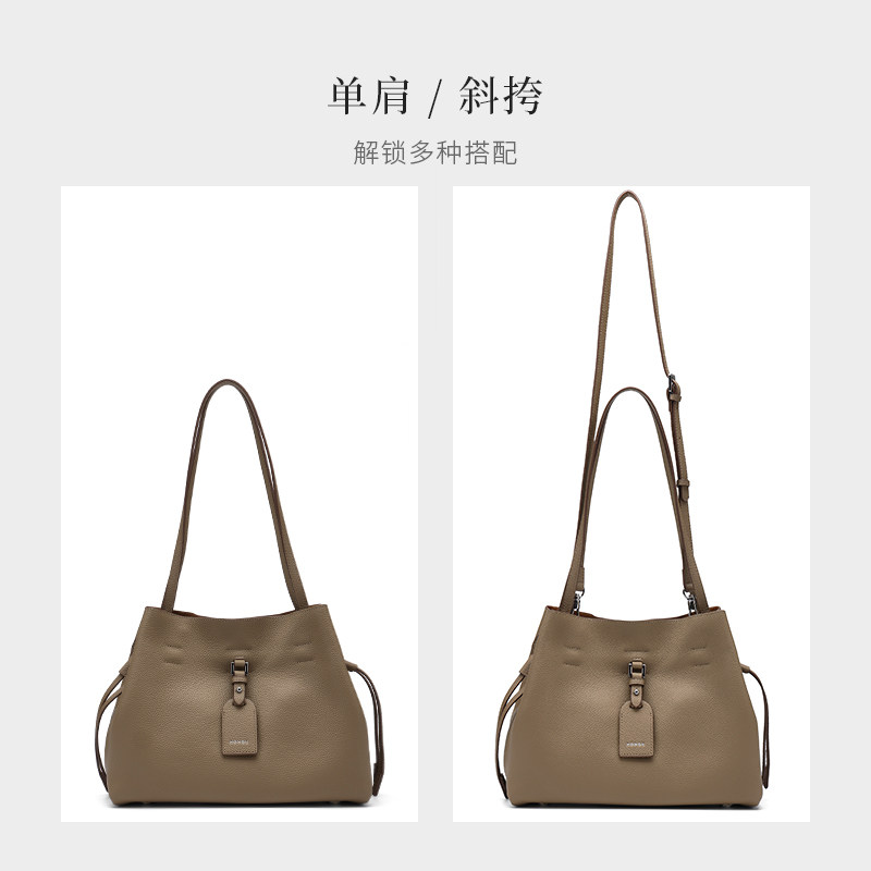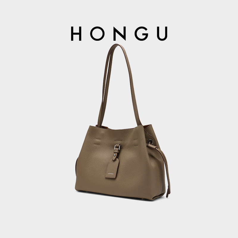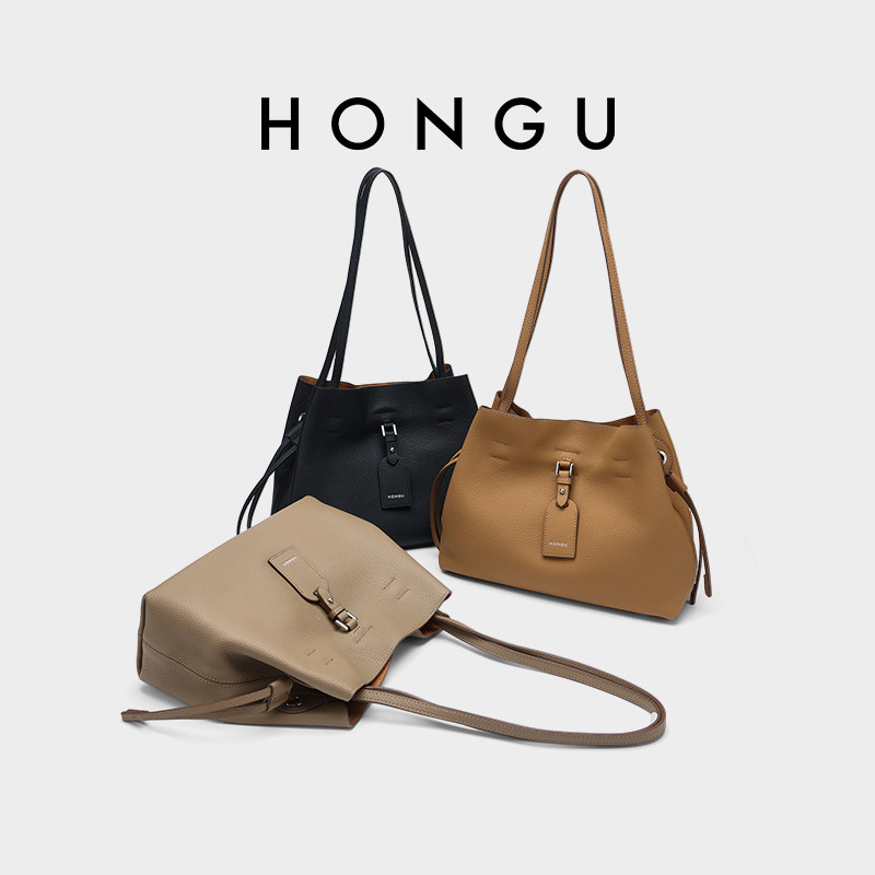 红谷包包女式2025新款真皮单肩斜挎包通勤上班大容量水桶包女士包
