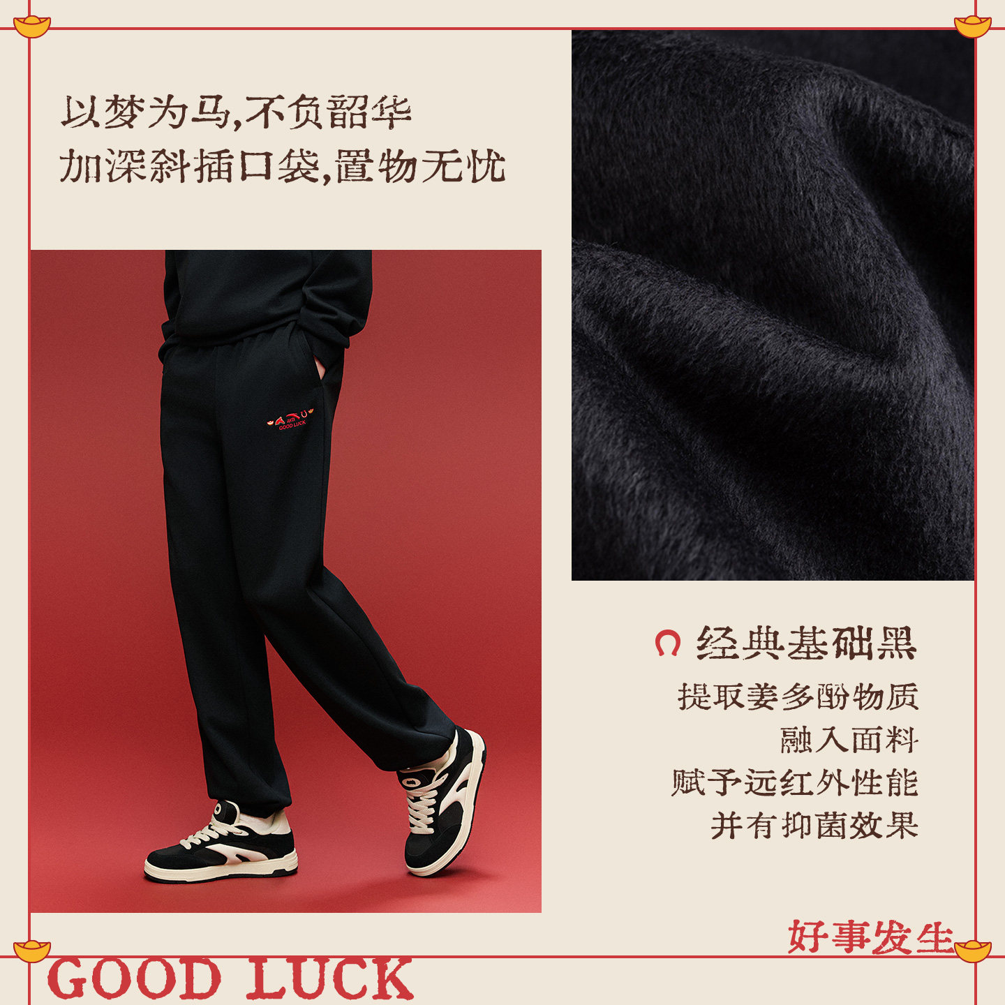 安踏好事发生丨“有钱花”加绒运动卫裤男士冬宽松休闲束脚长裤子