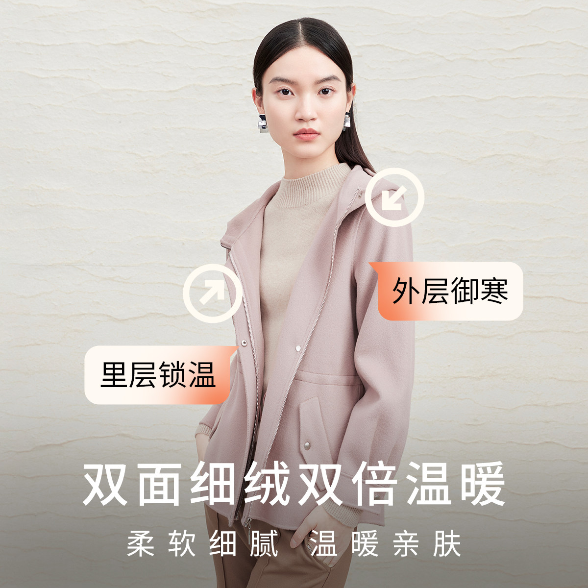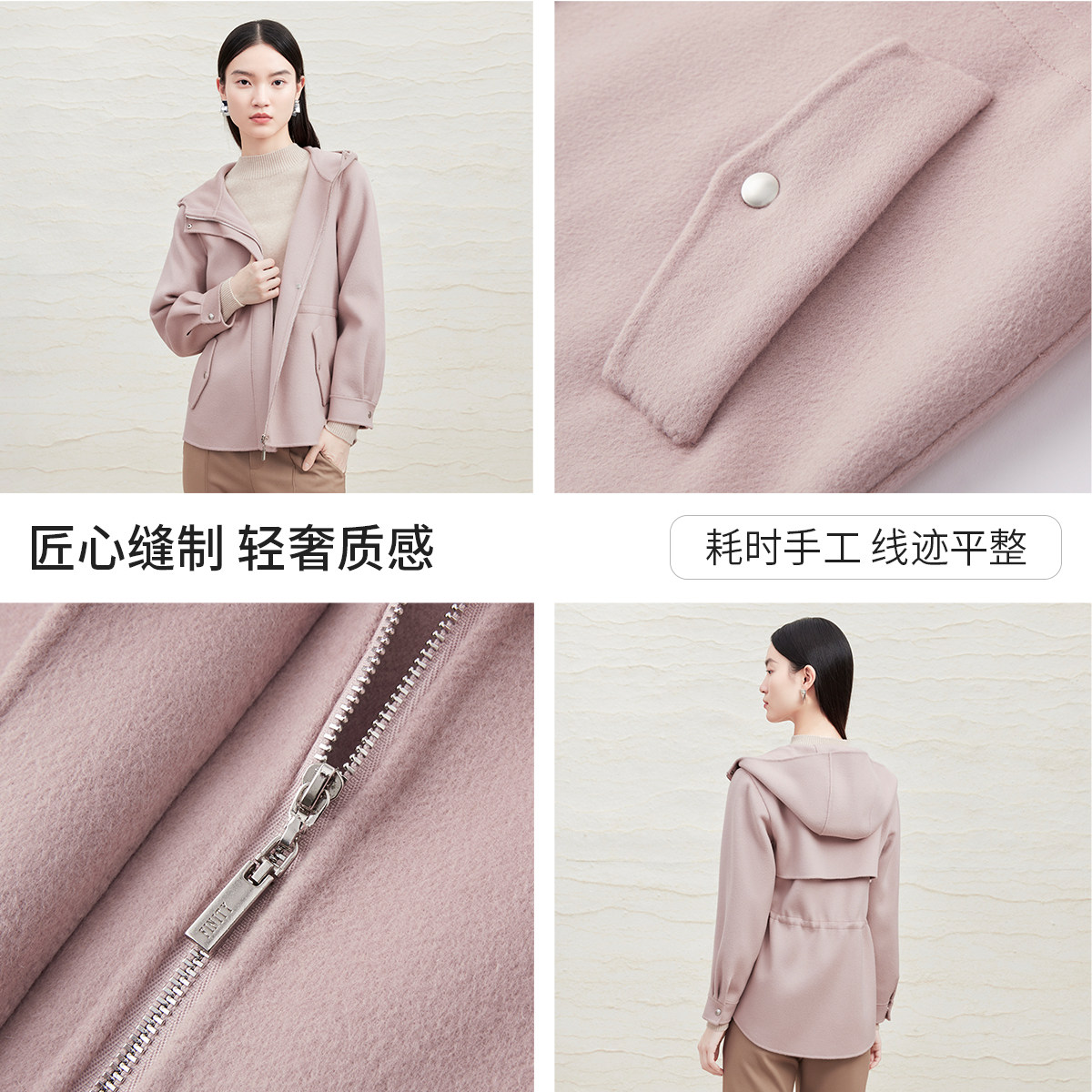 FINITY菲妮迪连帽毛呢外套2025冬季新款简约双面呢保暖羊毛大衣女