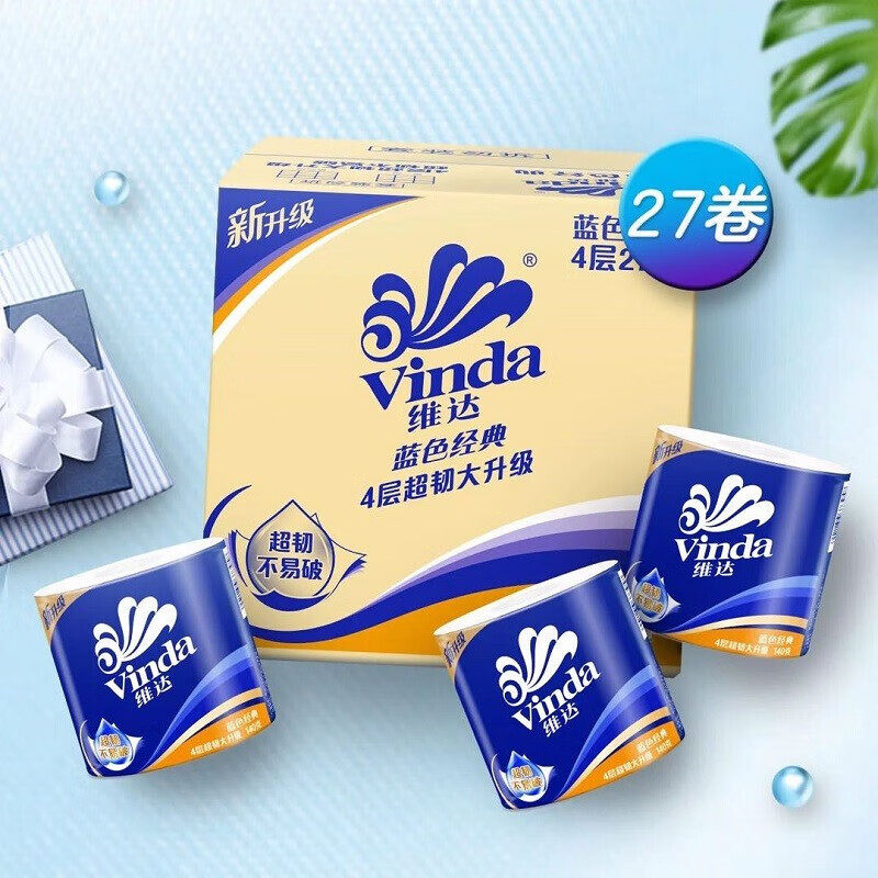 【孙颖莎推荐】维达卷纸蓝色经典卫生纸巾四层家庭装有芯卷纸厕所
