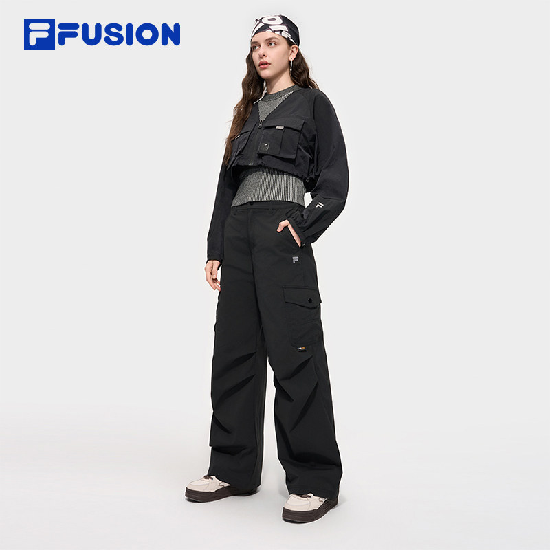 FILA FUSION斐乐潮牌梭织运动长裤女裤2025秋季新款工装裤阔腿裤