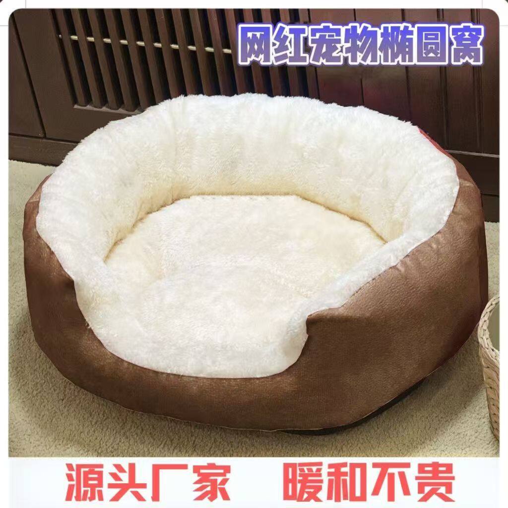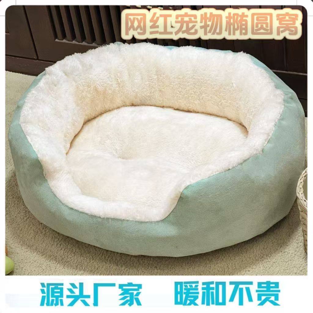 猫窝椭圆加绒狗窝冬季保暖猫咪加厚宠物垫子四季通用防寒耐脏狗床