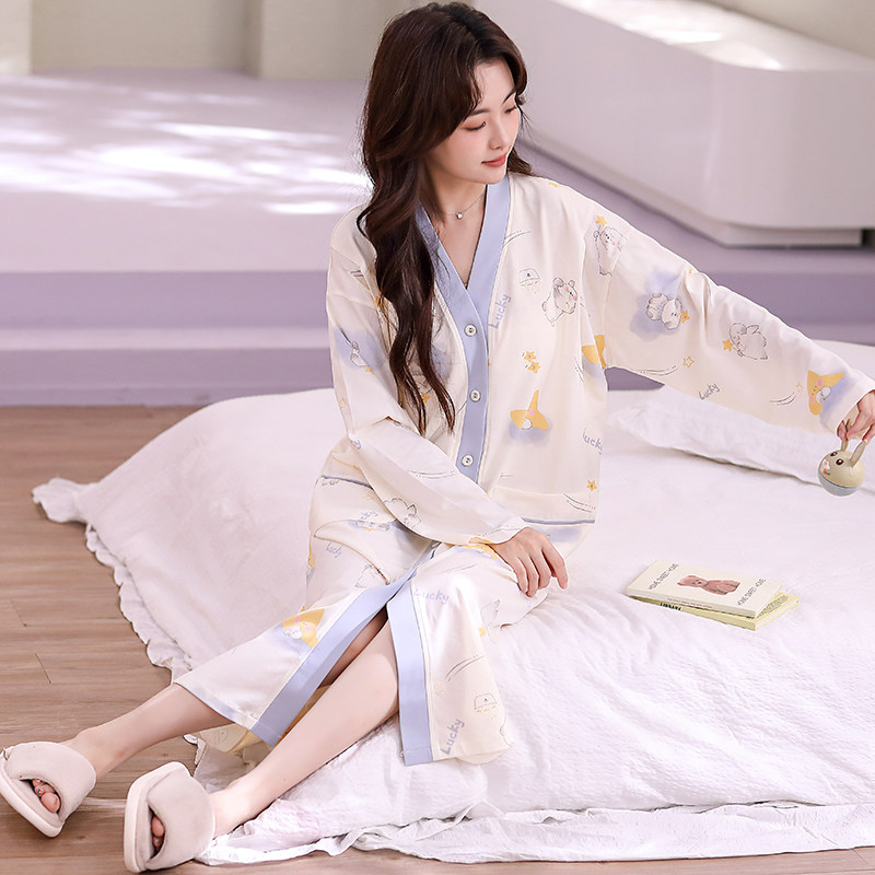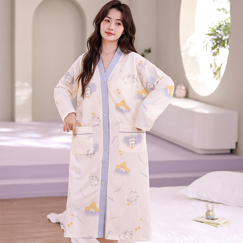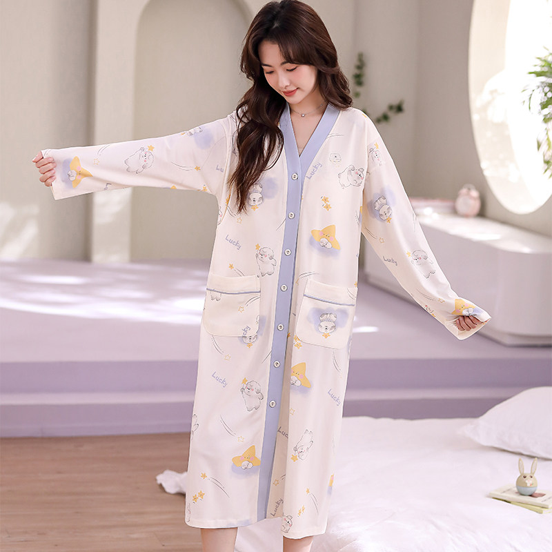 婧麒哺乳睡裙纯棉孕妇睡衣秋季待产裙喂奶连衣裙带胸垫产后月子服