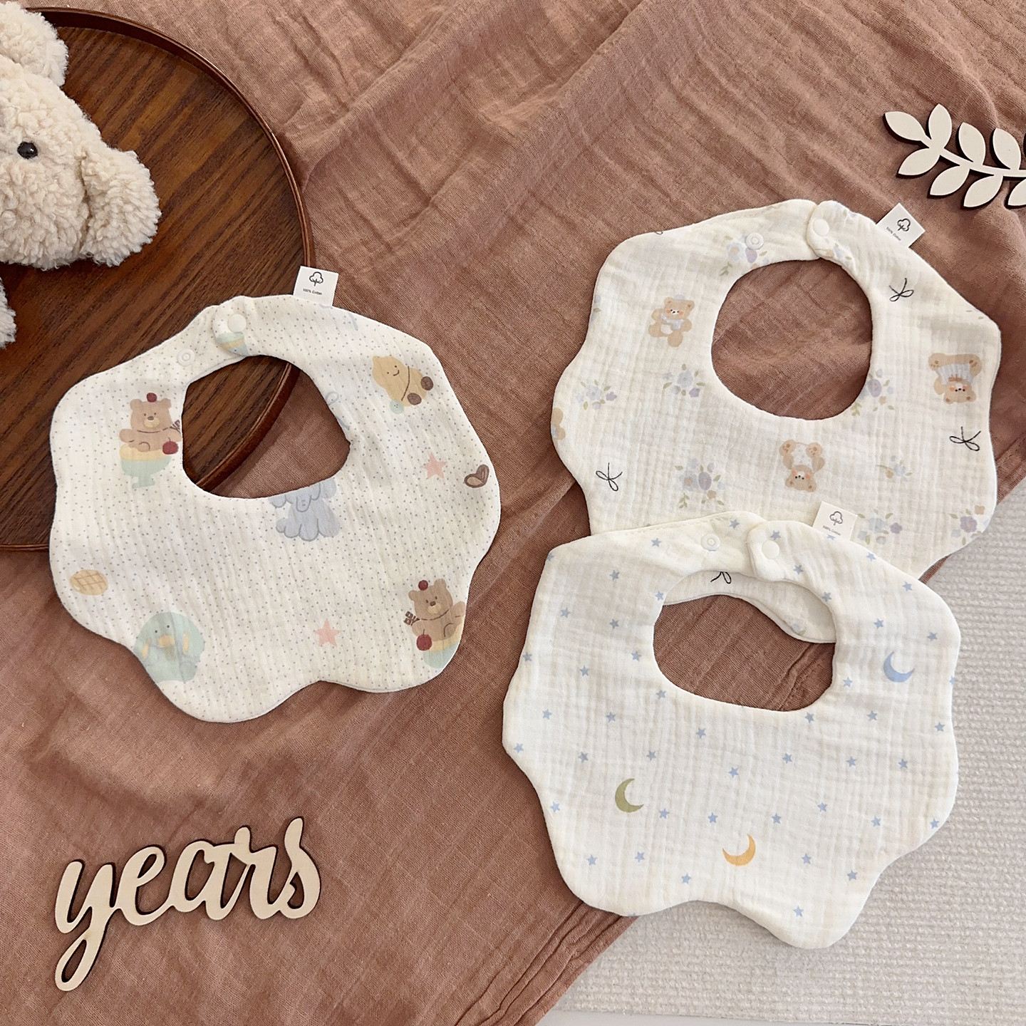 【3件装】A类春夏纯棉纱布围嘴新生儿围兜卡通柔软婴儿全棉口水巾