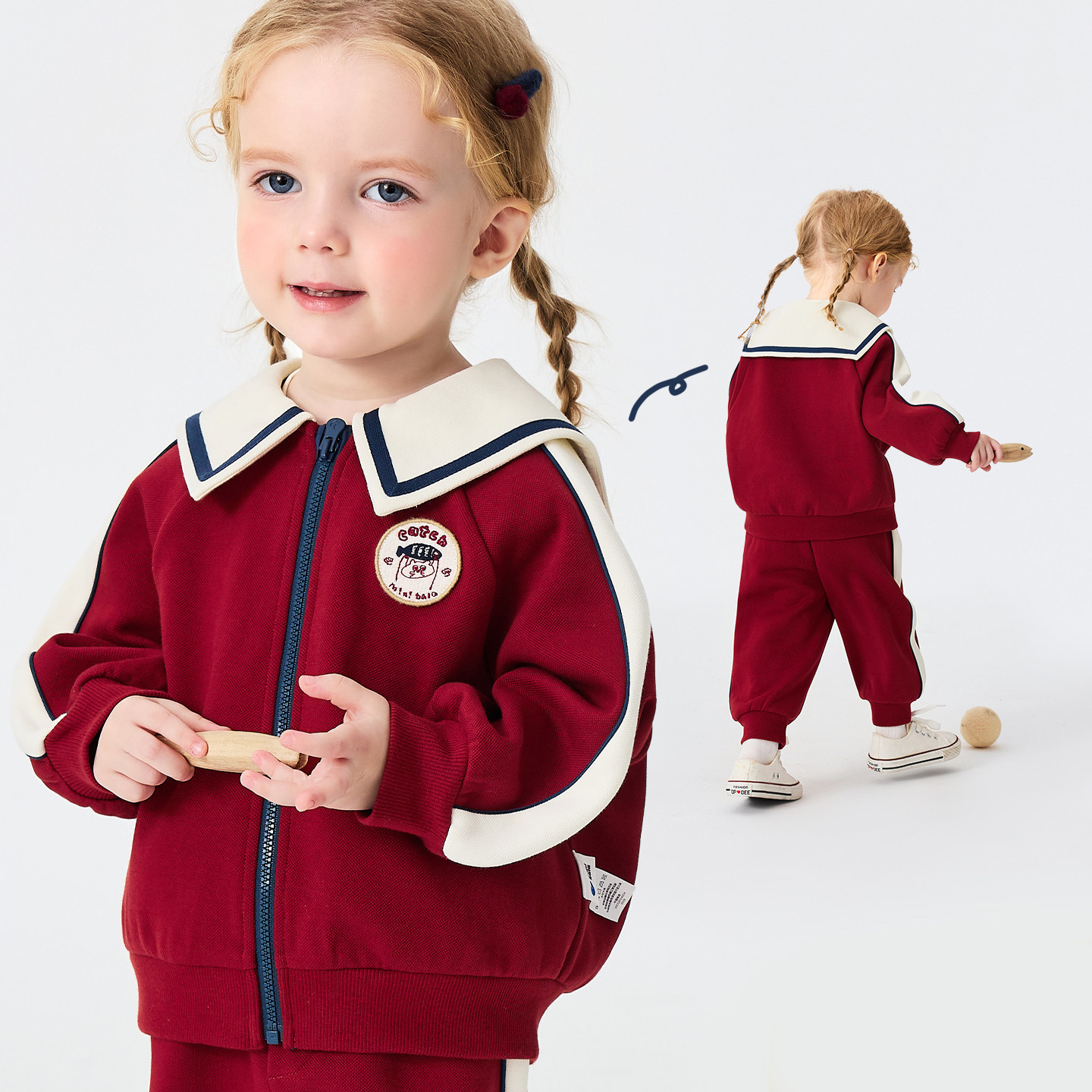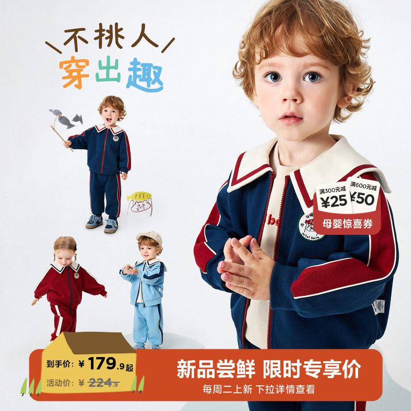 迷你巴拉男女童套装宝宝儿童长袖外套长裤复古不易起球2026春新品