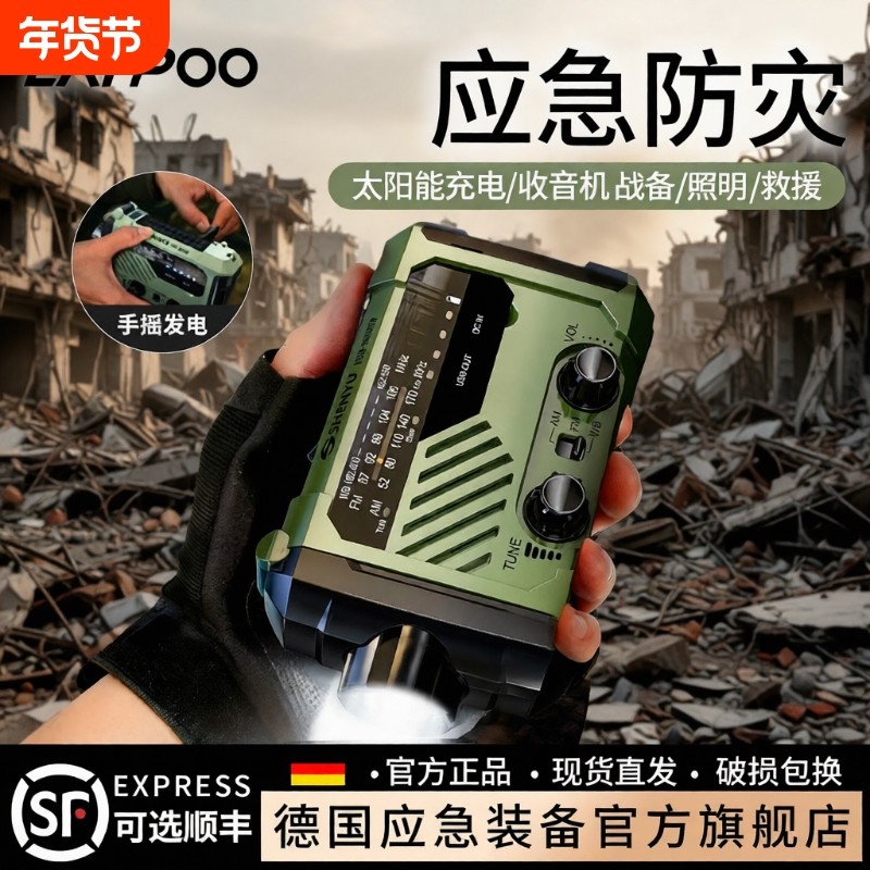 手摇发电手电筒收音机多功能2025新款太阳能战备应急防灾充电装备